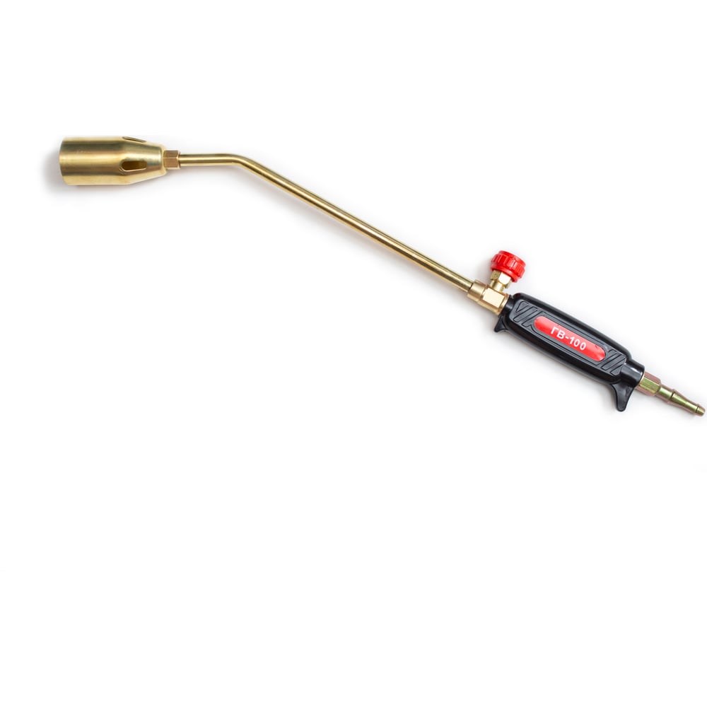 Пропановая горелка для кровельных работ ИНКО ГВ-100 В 35 ГВ100В с клапаном и регулировочными вентилями инжекторного типа. Предназначена для нагрева изделий из черных и цветных металлов, неметаллических материалов, а также для оплавления поверхности битумного рулонного материала при производстве гидроизоляции. Применяется для нагрева при сгибе пластмассовых труб, сушке железобетонных панелей, литейных форм, кирпичной кладки и других работ. В качестве горючего газа применяется пропан-бутановая смесь.