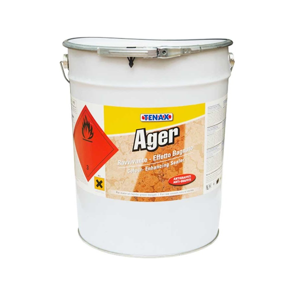 Пропитка Tenax Ager усилитель цвета 20 л 039230044 применяется для усиления цвета изделий из мрамора, гранита и камня. Образует стойкий "мокрый" эффект, подчеркивая структуру и цвет поверхности. Надежность. Готовое покрытие отличается устойчивостью к воздействию ультрафиолета и влаги. Состав готов к применению, что обеспечивает простоту использования.