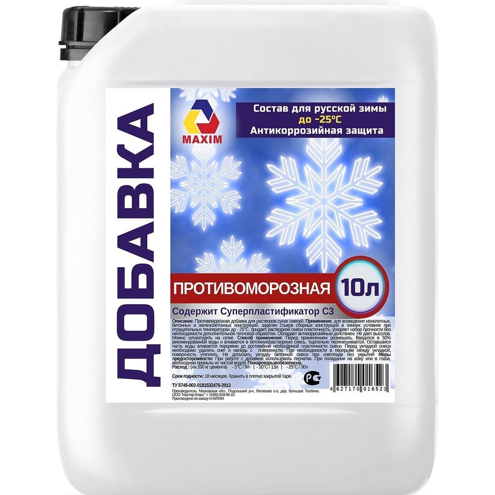 Противоморозная добавка С-3 для сухих смесей с суперпластификатором 10 л Maxim 11606706 для растворов сухих смесей. Применение: для возведения монолитных, бетонных и железобетонных конструкций, заделки стыков сборных конструкций в зимних условиях при отрицательных температурах до - 25°С, придает растворной смеси пластичность, ускоряет набор прочности без необходимости дополнительной тепловой обработки. Обладает антикоррозийным действием. Не дает высолов. Можно штукатурить на сетке.