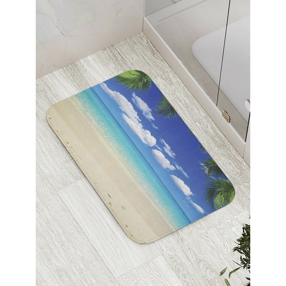 Коврик противоскользящий JoyArty "Пляжные ракушки" для ванной, сауны, бассейна, bath_8964 - незаменимый аксессуар в ванной комнате, возле бассейна, в сауне или у входа в душевую кабину. Скользкая мокрая плитка может стать причиной серьезных травм: чтобы устранить эту угрозу, достаточно приобрести и положить на поверхность плитки специальный противоскользящий коврик. Мягкий и приятный на ощупь верх коврика для ванной изготовлен из ткани Велсофт - одной из разновидностей микрофибры. Этот материал отлично сохраняет тепло и отличается высокой стойкостью к стиркам и износу. Контактирующая с полом нижняя часть коврика выполнена из особого нетканого материала с эффективным противоскользящим покрытием. Предлагаемый аксессуар рассчитан на эксплуатацию в помещениях с высокой влажностью и способен без каких - либо последствий длительно контактировать с водой.