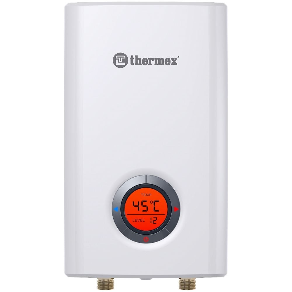 Проточный электрический водонагреватель Термекс Topflow 15000 ЭдЭБ00393 обладает стильным и компактным корпусом, который не будет занимать много места в малогабаритной ванной комнате или кухне. Корпус изготовлен из ударопрочного пластика. Нагрев воды происходит при помощи ТЭНа из нержавеющей стали. На лицевой части водонагревателя расположен ЖК-дисплей.