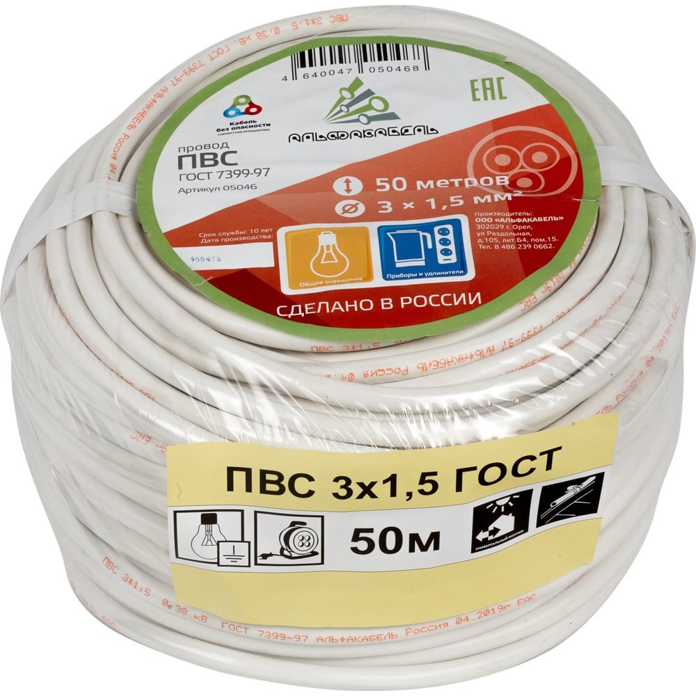 Провод ПВС АЛЬФАКАБЕЛЬ 3х1,5 мм ГОСТ 50 м 05046