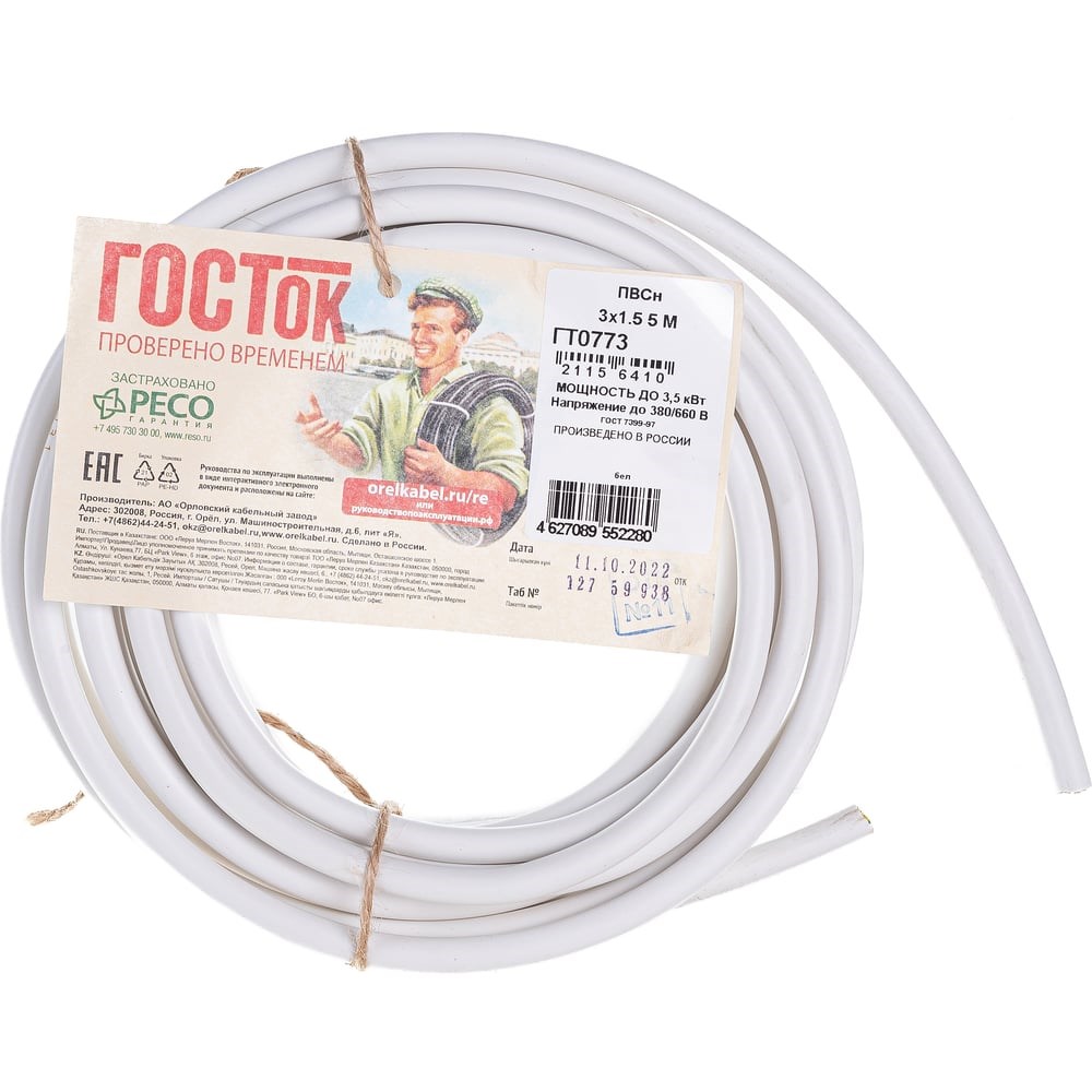 Провод ПВС 3 х 1.5 белый 5м ГОСТок ГТ0773