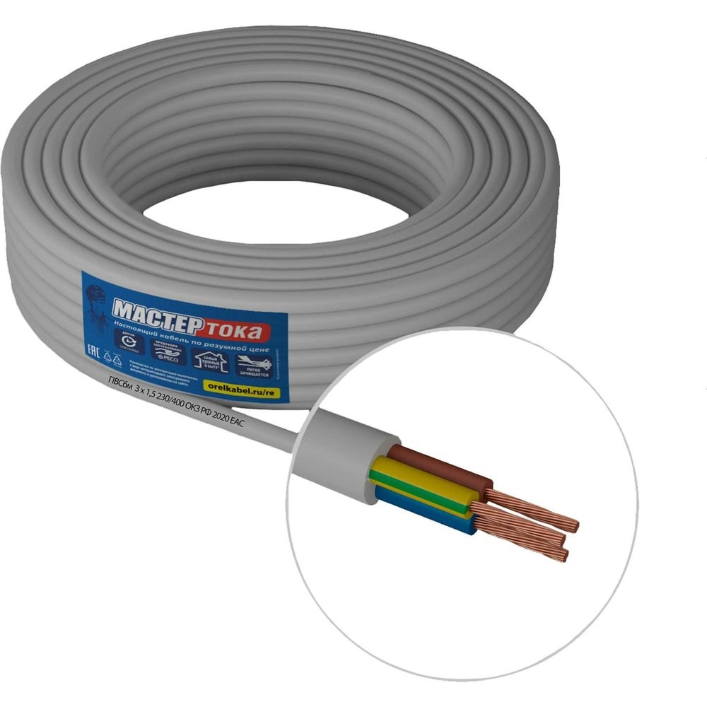 Провод ПВСбм Мастер Тока 3х1.5 белый 100м МТ1207