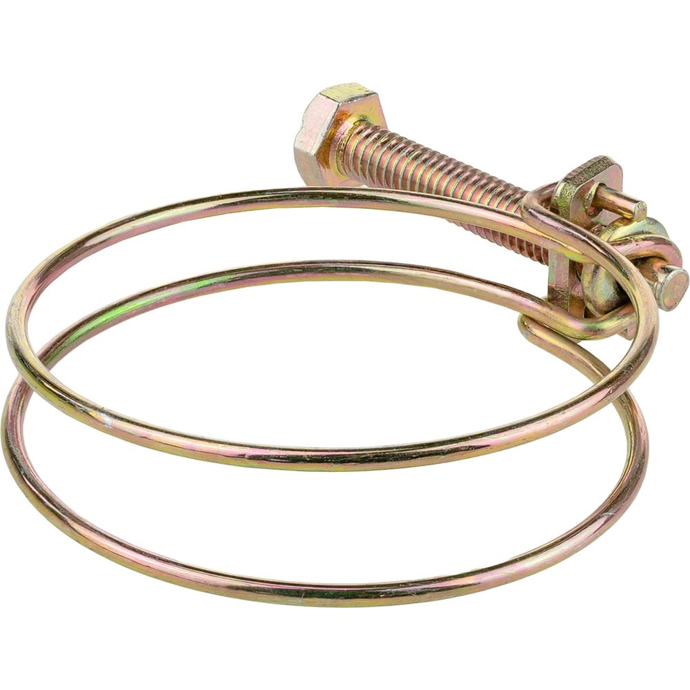 Проволочный спиральный хомут MasterProf 2", 51 мм, 1 шт. ИС.140816 имеет пружинный механизм, состоящий из двух частей. Одна имеет оцинкованную проволоку из стали, а вторая часть оснащена болтом, который затягивается. Сама затяжка выполняется при закручивании затяжного болта. Именно по этому принципу спираль сдвигается к стороне сужения. Данным хомутом отлично стягивать резиновые шланги и также его можно соединять с металлическими трубками.
