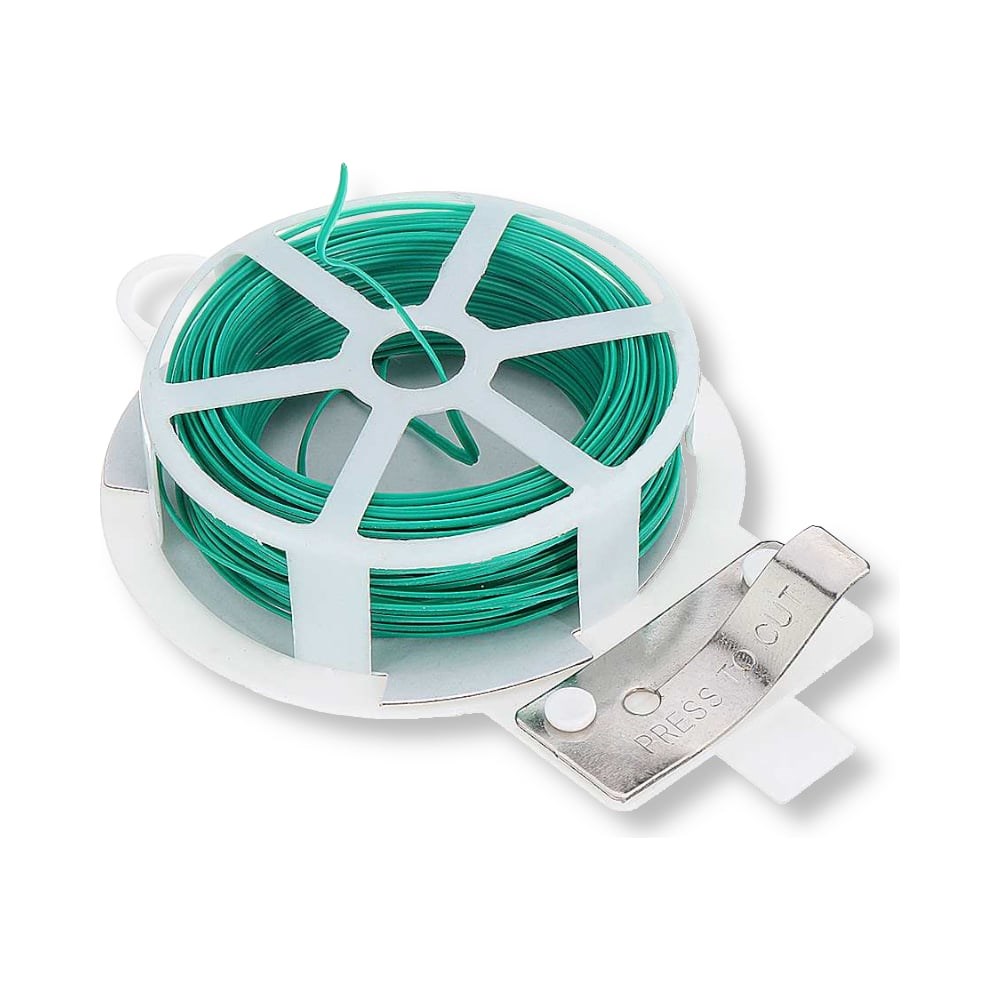 Проволока в ПВХ оплетке применяется для подвязки растений к опоре. В комплекте со встроенным резаком на катушке, который используется для её нарезки. Прочная, гибкая, водостойкая. Устойчивость к коррозии Экологичность использования, не обладает токсичными веществами Простота использования
