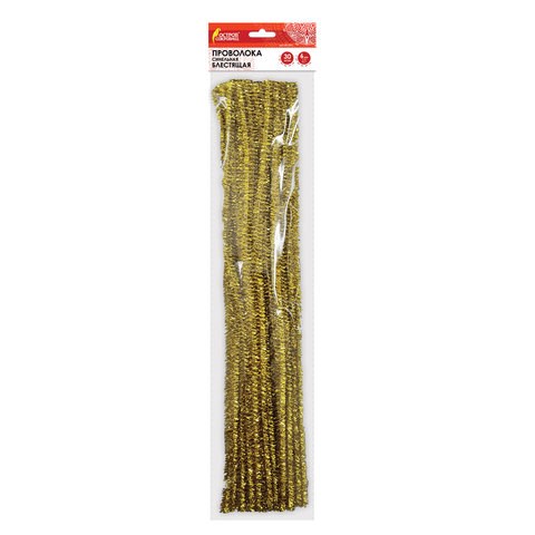 Проволока синельная для творчества "Блестящая", золотая, 30 шт., 0,6х30 см, ОСТРОВ СОКРОВИЩ, 661541