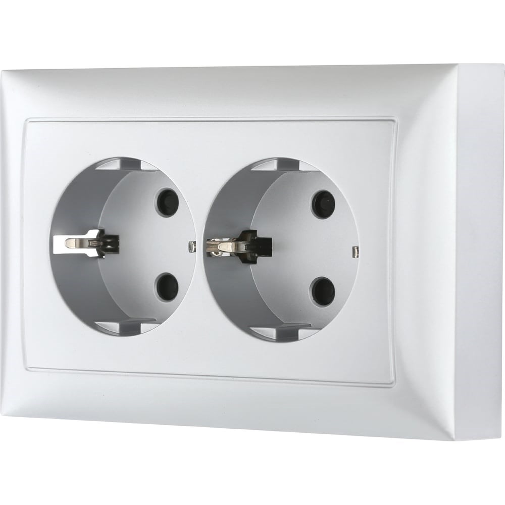 LK STUDIO розетка двойная прямая с заземляющими контактами и шторками, цвет серебристый металлик, артикул 863703-1 При монтаже двойных розеток LK STUDIO установка декоративных рамок не требуется, устанавливается в одну монтажную коробку