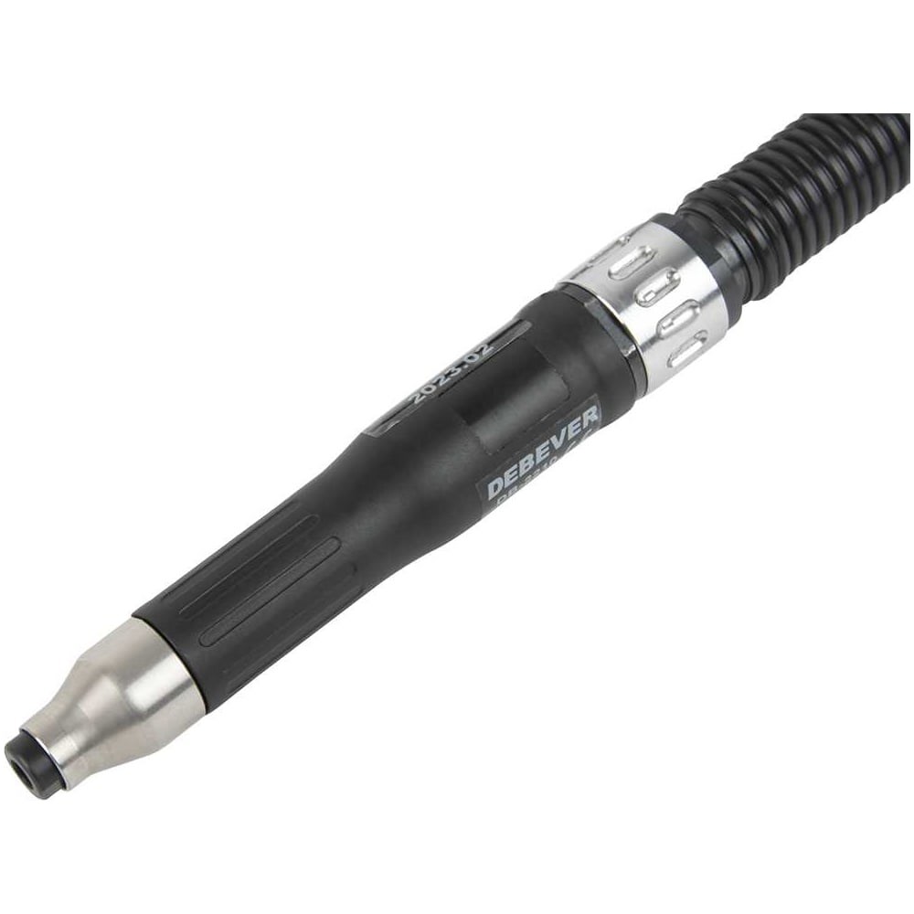 Пневматические машины карандашного типа имеют компактные размеры, малый вес и высокие обороты ( от 35 000 до 100 000 об/мин ). Применяются в разных сферах: в серийных производствах, и на технологических линиях средних и крупных предприятиях с централизованной системой подачи сжатого воздуха. Пневматическая прямая шлифовальная машина (ПШМ) DEBEVER DB-2210 предназначена для операций зачистки и шлифования деталей из различных металлов, металлических сплавов, камня, керамики и прочих материалов, оптимально подходит для обработки конструкций, имеющих труднодоступные участки или угловые соединения. Инструменты, используемые с данной моделью пневмомашины Твердосплавные борфрезы до Ø 3 мм Шлифовальные абразивные головки до Ø 5-6 мм Алмазные шлифовальные головки на оправке до Ø 3,5 мм Дополнительные характеристики: Исполнение включения- Поворотное кольцо Расход воздуха (л/мин.)- 79,28 Рабочее давление (бар)- 6,2 Выход воздуха- назад Зажимная цанга-3мм Скорость вращения (об/мин.)- 100 000