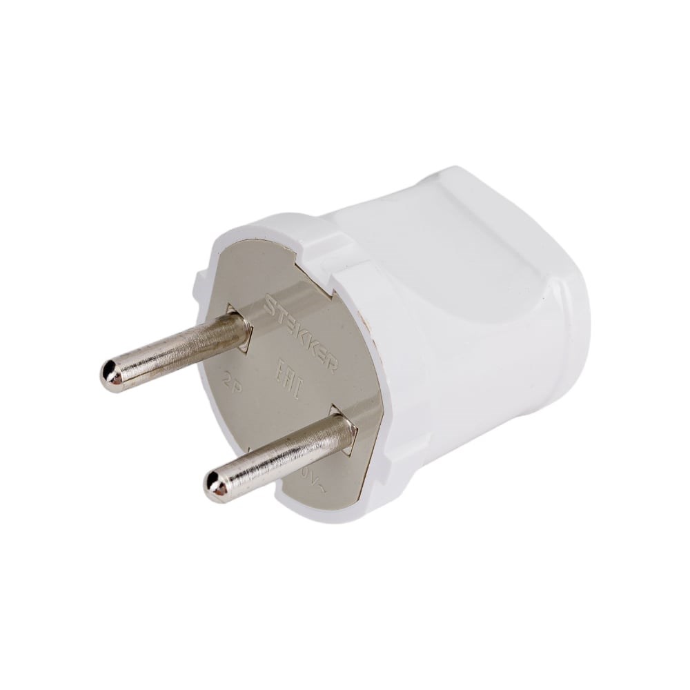 Прямая вилка STEKKER без заземления, пластик 250В, 10A, IP20, белая, PPG10-43-201 32855