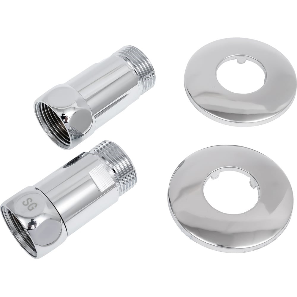 Прямое соединение для полотенцесушителя SG г/ш 3/4"х3/4", хром, 2 шт 731SCH0505 предназначено для бокового подключения полотенцесушителей к системе горячего водоснабжения или отопления. Резьбовой фитинг представляет собой муфту с накидной гайкой с одной стороны и штуцером с другой.