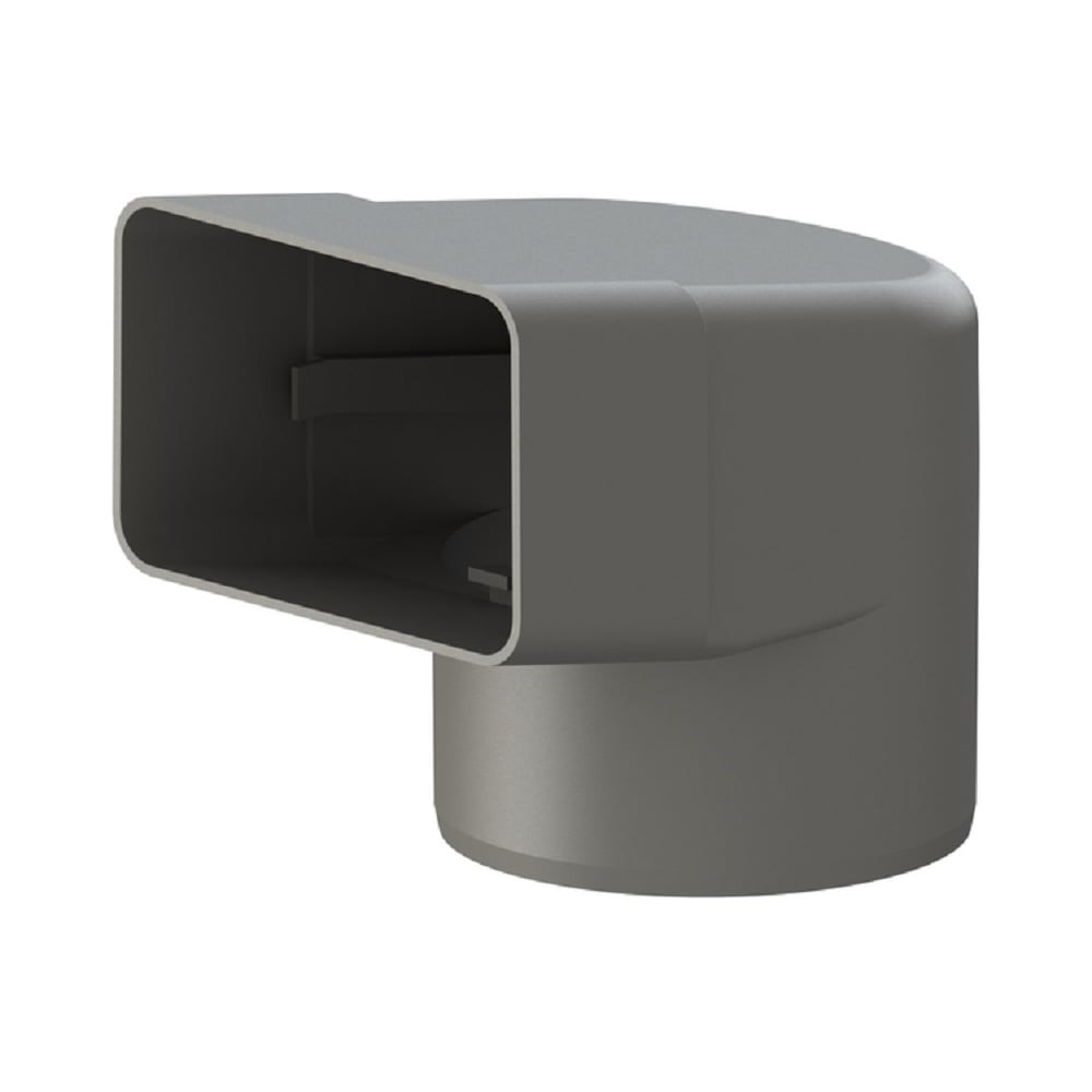 Угловой отвод Татполимер ТП-89.100 (прямоугольный; 65x100 мм; на диаметр 100 мм; серый) 29485 применяется для соединения с парапетной воронкой ТП-01.П.ПП и водосточной трубой круглого сечения диаметром 100 мм.