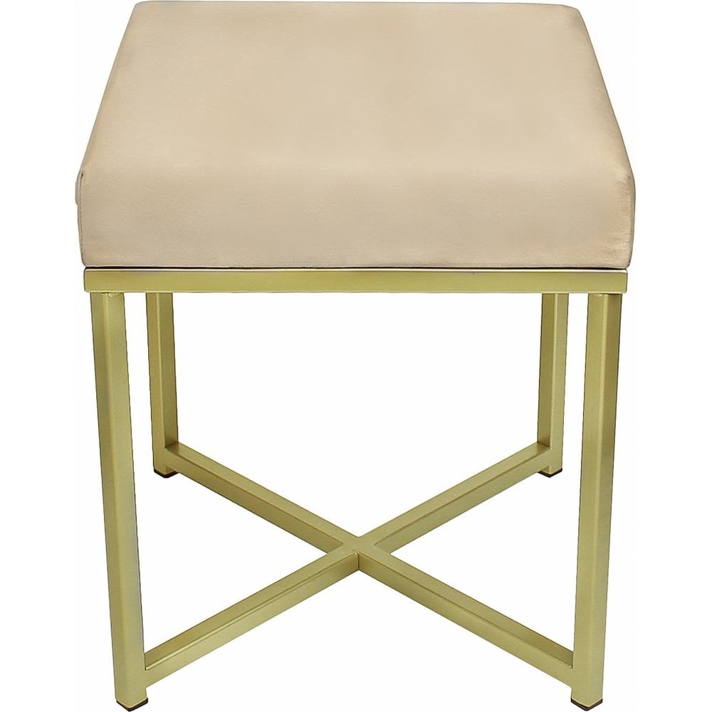 Пуф CRUZ с золотым основанием и велюровой подушкой.Мягкий пуф подойдет для прихожей, гардеробной, спальни, гостиной, зала и студии, а также хорошо будет смотреться на балконе. Пуф доставляется в собранном виде в надежной упаковке. Характеристики пуфа CRUZ: • размеры (длина х ширина х высота) 400 x 400 x 470 мм, • вес пуфа – 5,2 кг, • высота подушки – 80 мм, • обивка – искусственный велюр, • наполнитель – пенополиуретан, • максимальная нагрузка – 130 кг. Каркас пуфа изготовлен из стальной профильной трубы 20х20 с полимерным покрытием. Собственное производство гарантирует надежность и эстетику сварных швов металлической мебели. Пуфик с мягкой подушкой понравится ценителям комфорта и лаконичного дизайна. Обивка из бархатистого велюра легко чистится от загрязнений, качественный наполнитель сохраняет форму подушки. Мягкая обивка с высокой износостойкостью, прошла тест Мартиндейла на истираемость — 35 000 циклов. Пуф в прихожую украсит интерьер квартиры, загородного дома, офиса, салона, бара, ПВЗ, кафе, ресторана и студии. Коллекция пуфов отлично сочетается со стеллажами MALTA.