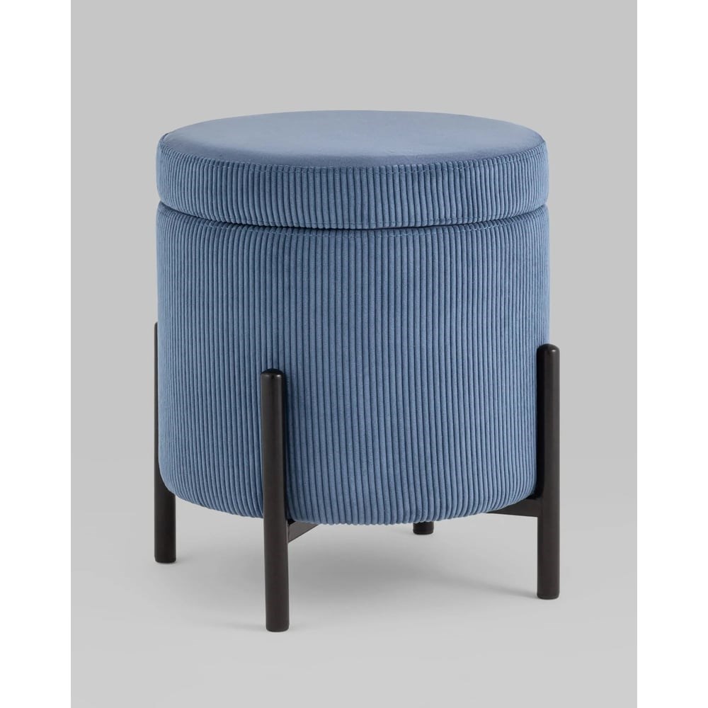 Круглый пуф с ящиком на металлических ножках. Мягкая обивка выполнена из износостойкого велюра с декоративной отстрочкой по бокам. Металлические ножки черного цвета выдерживают нагрузку до 120 кг. Подпятники в основании ножек делают пуф более устойчивым и предотвращают скольжение. Под сидением имеется ящик для хранения мелочей, крышка полностью съемная. Пуфик станет отличным дополнением для спальни, прихожей или зала. Высота пуфа: 44 см. Ширина: 43 см. Размеры ящика для хранения: 26,5*30*30 см.