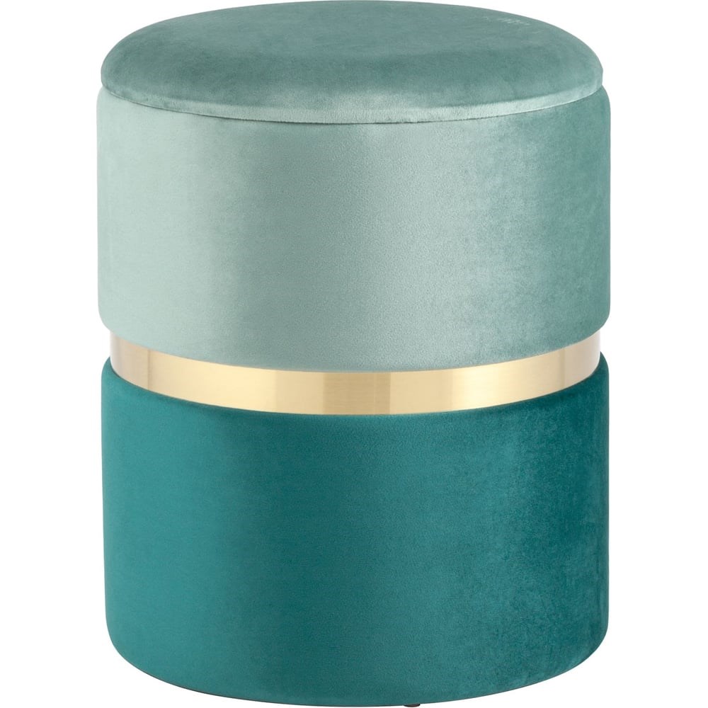 Лаконичная модель пуфа в мягкой обивке прекрасно впишется в современные интерьеры. Обивка выполнена из велюра в светлом и темном оттенках и украшена металлическим ободком в золотом цвете. Под сиденьем имеется ящик для хранения различных мелочей. В основании предусмотрены специальные подпятники, которые делают пуф более устойчивым и предотвращают скольжение. Высота пуфа: 44 см. Диаметр: 36 см.