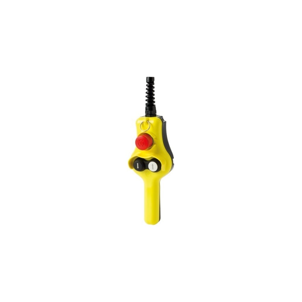 Пульт управления Giovenzana для двухскор. моторов, (2 кн. + 1 аварийная кн.) HP03 - эргономичный подвесной пульт управления для лебёдки, 3 кнопок. Особенности: Механическая блокировка работы в двух направлениях; Двойная изоляция IP65 (IEC / EN 60529); Нанесенные путем лазерной маркировки символов согласно стандартам EN 60204-1, FEM 9.941; Ударопрочность и термостойкость; HP03 – односкоростной (ГРИБОК:1НЗ – ВВЕРХ:1НР – ВНИЗ:1НР).