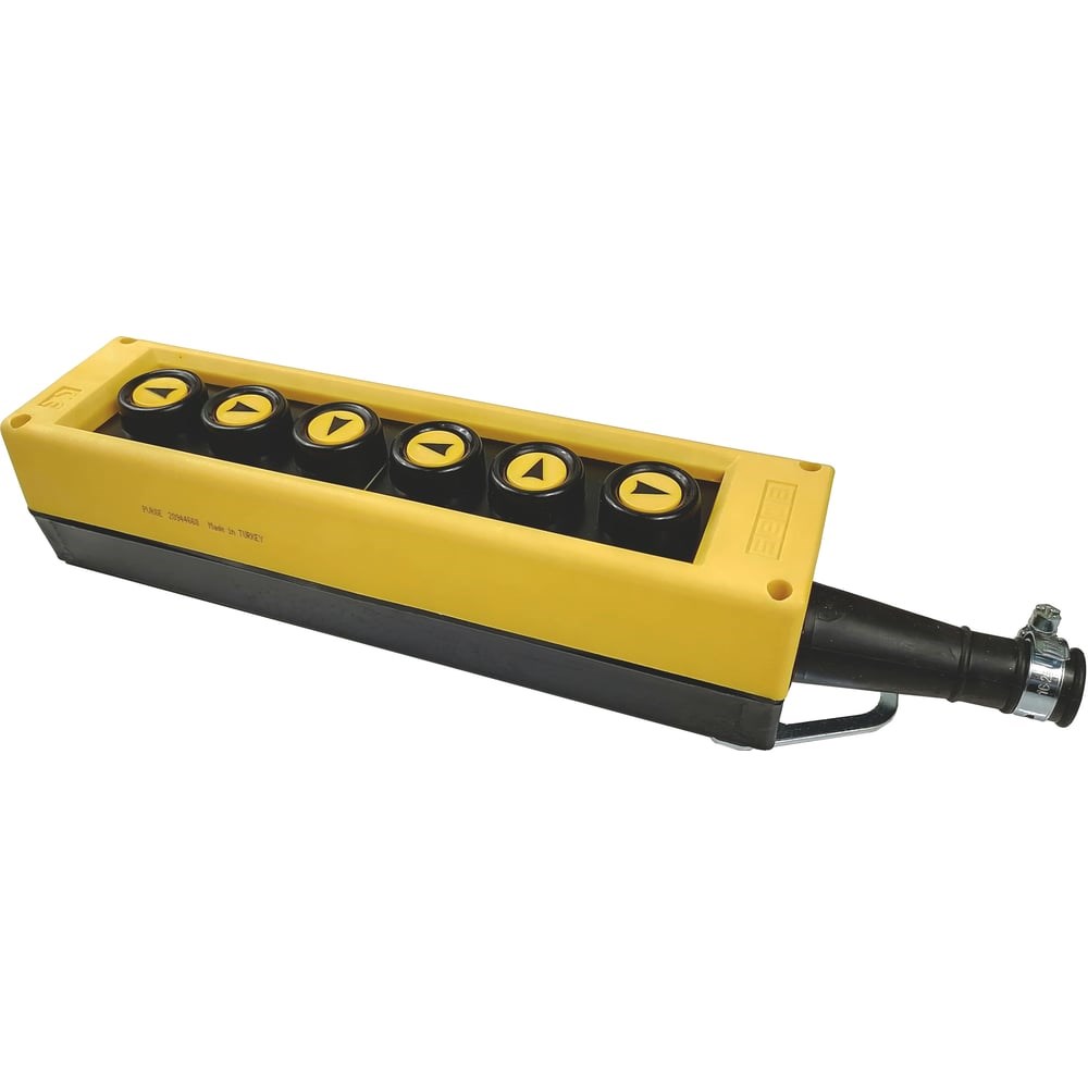Пульт управления для подъёмников Emas 250 В, номинальный ток 4А PVK6E имеет корпус с уровнем защиты IP65, а также прорезиненные кнопки. Это позволяет использовать данную модель в условиях повышенной влажности. Удобная форма обеспечивает комфорт в работе. Корпус изготовлен из прочного пластика армированного стекловолокном и отличается высоким качеством исполнения.