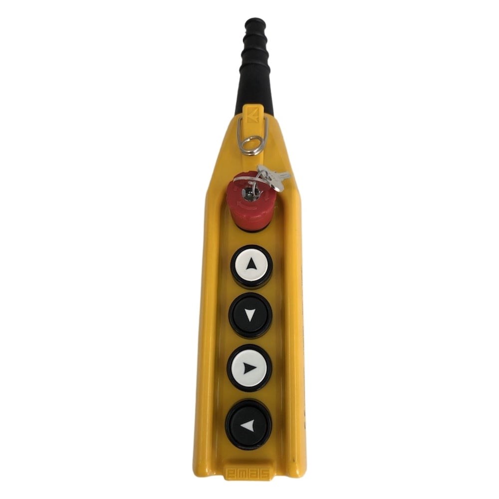 Пульт управления с аварийной кнопкой, с ключом серии CP EMAS PV5EA30B22 предназначен для управления кранами, кран-балками, тельферами, цепными и канатными талями, мостовыми и козловыми кранами. Корпус изготовлен из высококачественного пластика армированного стекловолокном, обладает уровнем защиты IP 65. Надежные прорезиненные кнопки управления позволяют эксплуатировать эти изделия в условиях повышенной влажности (под дождем и снегом). Вариант пульт с ключом удобен для разграничения доступа к грузоподъемным механизмам. Внимание! Кабель в комплект поставки не входит (приобретается отдельно).