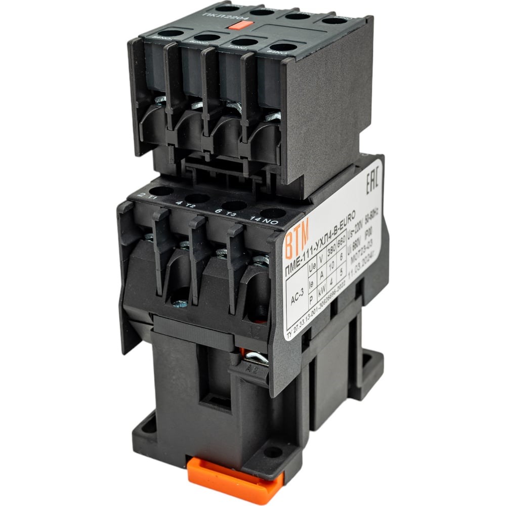 Пускатель ВТМ (S) ПМЕ-111-10А-220АС-(3з+2р)-УХЛ4-В-EURO ВТМ00058261 - устройство дистанционного управления, предназначенное для частых включений и отключений электрических цепей. Предназначен для работы на переменном токе при напряжении сети до 660 Вольт и частоте 50-60 Гц. Применение: управление электродвигателями, электрооборудованием кранов, в стационарных установках микропроцессорной техники. Внимание! Фотография товара является условной, при выборе ориентируйтесь на технические характеристики.