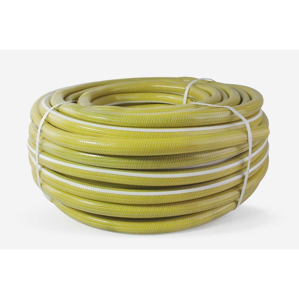 Пятислойный, армированный шланг НОВЭМ ПВХ ЛапотОК ЛПТ 1/2" 50м, желтый предназначен для полива, перекачки и прочих работ с жидкостями, в том числе и пищевыми. Внутренний слой ПВХ обладает бактерицидными свойствами и препятствует образованию вредных микроорганизмов внутри шланга. Наружный слой ПВХ имеет защитные добавки от воздействия внешних факторов (уф-излучение, истирание). Между внутренним и наружным ПВХ слоями расположены два дополнительных слоя, которые предотвращают проникновение солнечных лучей и создают дополнительное усиление шлангу, а так же, слой текстильного плетения, предотвращающий скручивание и заломы шланга. Рабочая температура от -5 до +80 градусов (кратковременно до +120 градусов). Рабочее давление - 10 бар, давление на разрыв - 30 бар. Внимание, изображение товара может отличаться от реального! Верные параметры указаны в технических характеристиках товара.