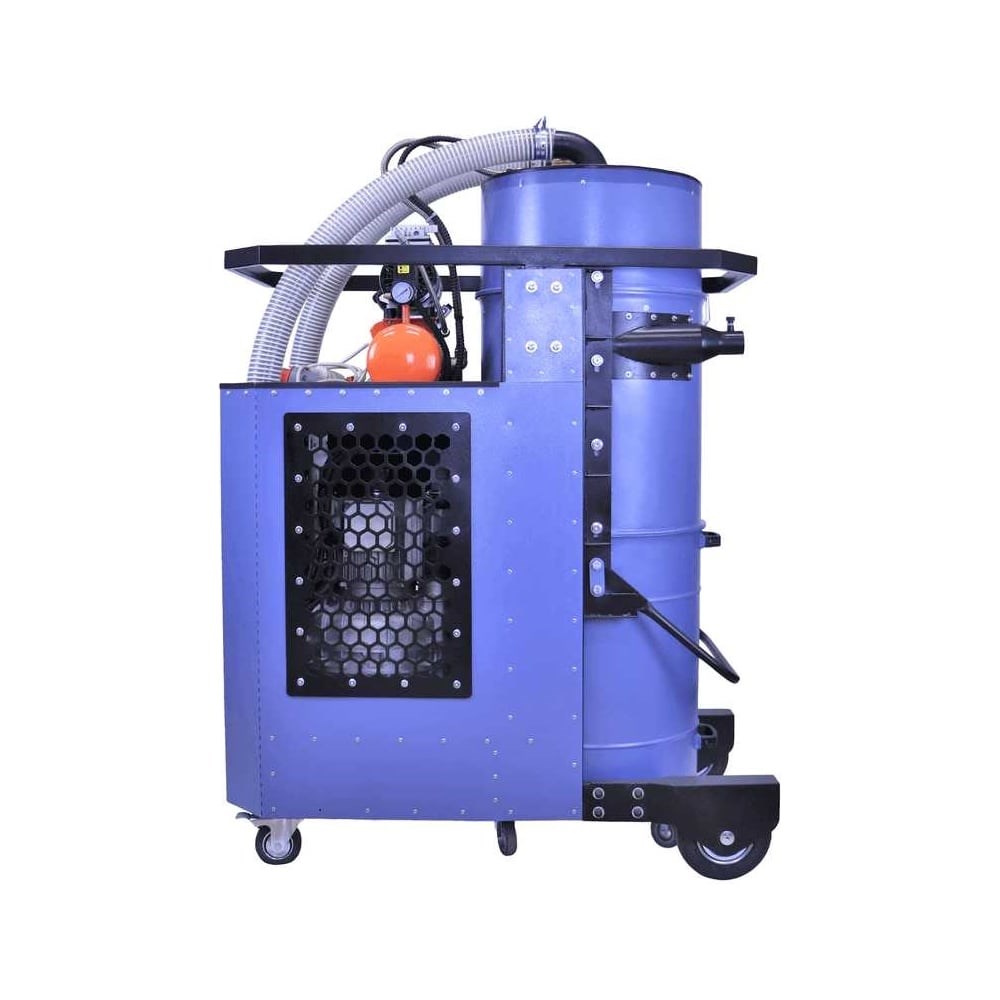 Промышленный пылесос с мусорным баком 110 литров и циклонной технологией фильтрации загрязнений с системой автоматической пневмоочистки HEPA фильтров. Параметры подключения: Электропитание 3x380/50 В/Гц. Мощность двигателя 4.0 кВт.