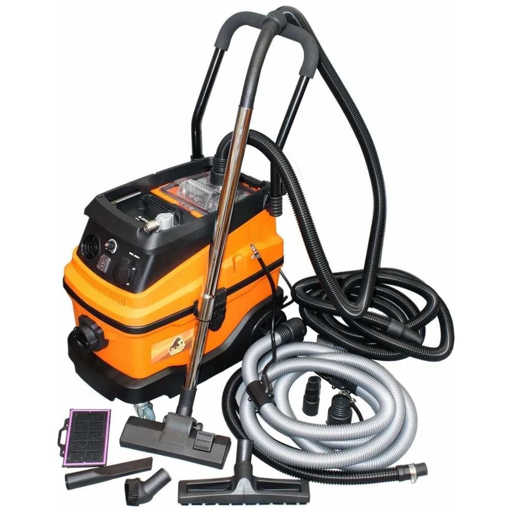 Пылесос Русский Мастер 1630EP с автоматикой для электро и пневмоинструмента РМ-97852 предназначен для сухой и влажной уборки. Оснащен розеткой для электроинструмента, что облегчает ремонтные работы. Корпус из прочного материала устойчив к механическим воздействиям. Поставляется в комплекте с несколькими насадками, благодаря чему универсален в применении. Дополнительные характеристики: Мощность на розетке (макс.) 2000 Вт, Класс 1 Полная мощность (макс.) 3600 Вт Производительность по воздуху 119 м3/ч Категория защиты IРX4 Длинна шнура 4.5 м. Рабочее напряжение: 220-400 В.