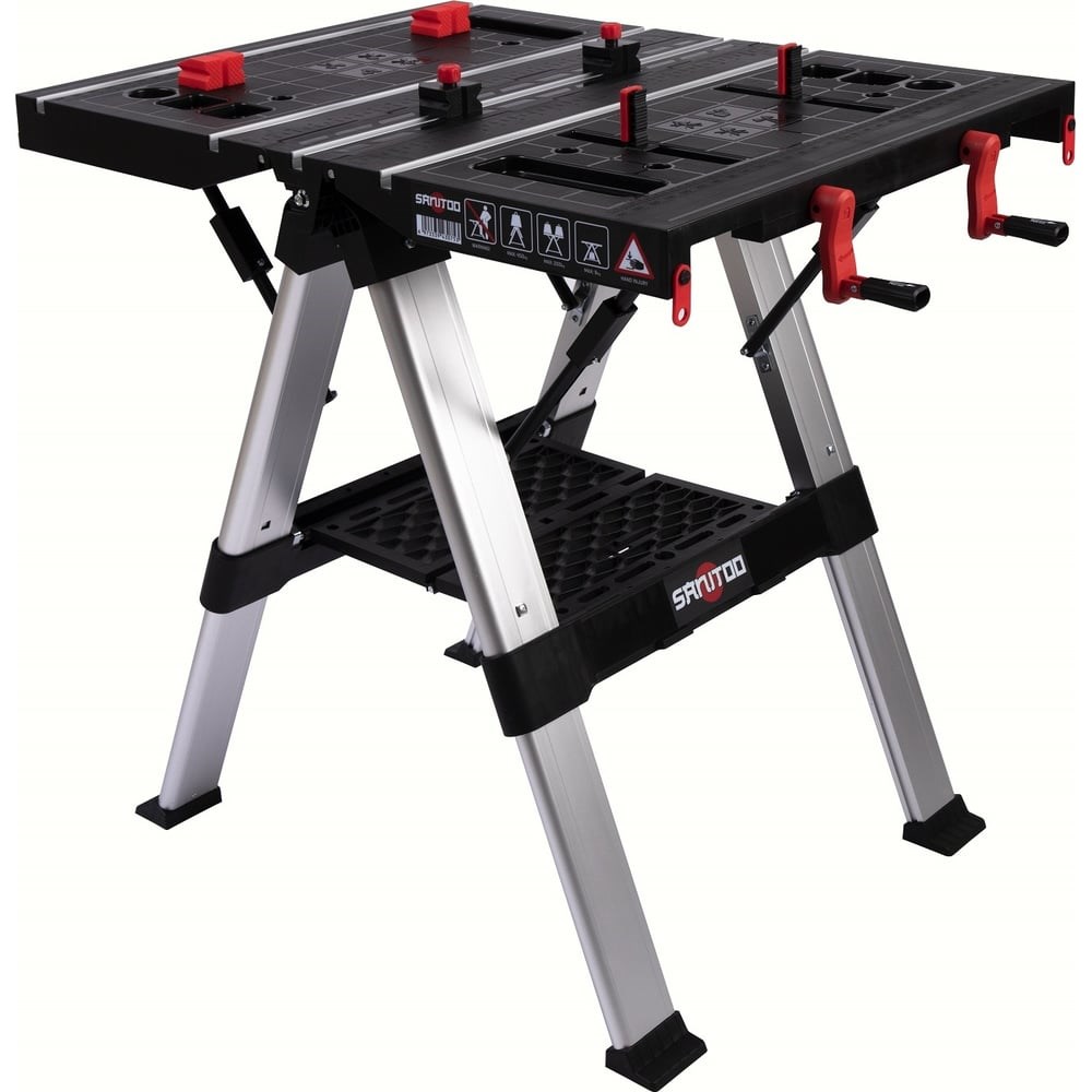 Рабочий стол-трансформер 2-в-1 - это универсальное изделие для домашней мастерской. Может использоваться как в качестве верстака, так и строительных козел. Не требует сборки и практически сразу готов к работе независимо от режима использования. Столешницы выполнены из прочного пластика, усилены ребрами жесткости и позволяют выдерживать высокие нагрузки при использовании. Стальной каркас и станина из алюминия обеспечивают наилучший баланс веса и прочности конструкции изделия. Интегрированная зажимная система позволяет надежно фиксировать детали и заготовки разного размера и формы для обработки и сборки. Размер рабочего стола - 849х630 ммВысота рабочего стола – 810 ммМаксимальная ширина зажимаемой заготовки – 650 ммСтолешницы имеют углубления для крепежа и мелких деталейВстроенная складная полка для хранения инструмента во время использованияБлагодаря складываемым телескопическим опорам станины изделие в сложенном виде занимает минимальное пространство и удобно для хранения и транспортировкиВ режиме верстака (рабочего стола) максимальная нагрузка на столешницу – 200 кгВ режиме строительных козел максимальная нагрузка на изделие– 450 кгИнструкция по сборке, эксплуатации и хранению изделия – внутри коробки