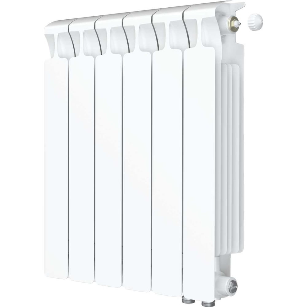 Радиатор биметаллический RIFAR MONOLIT Ventil 500 06 секц. нижн. прав. R-MN-500-06-VR Предназначен для отопления жилых, общественных, административных и производственных зданий с замкнутыми и открытыми системами, системами отопления. Имеет возможность нижнего подключения к системе отопления. Подключение осуществляется снизу справа. В качестве присоединительной арматуры можно использовать как узел нижнего подключения со стандартным межосевым расстоянием 50 мм, так и одиночные присоединительные вентили с учетом типа и конфигурации системы отопления. Возможно изменение количества секций. Для этого может понадобиться: ниппель межсекционный для скрутки радиаторов 1" и прокладка для радиатора межсекционная паронитовая. В качестве теплоносителя для модели RIFAR MONOLIT использовать только специально подготовленную воду согласно п. 4.8 СО 153-34.20.501-2003 "Правила технической эксплуатации электрических станций и сетей Российской Федерации". Состав: алюминий, сталь, порошковое покрытие. Расшифровка маркировки. 500 – межосевое расстояние в мм. Необходимое количество секций определяется по формуле S помещения х H потолков х оконный коэффициент (35 – если стеклопакеты, 40 – если обычные окна) / теплоотдача секции = количество секций.