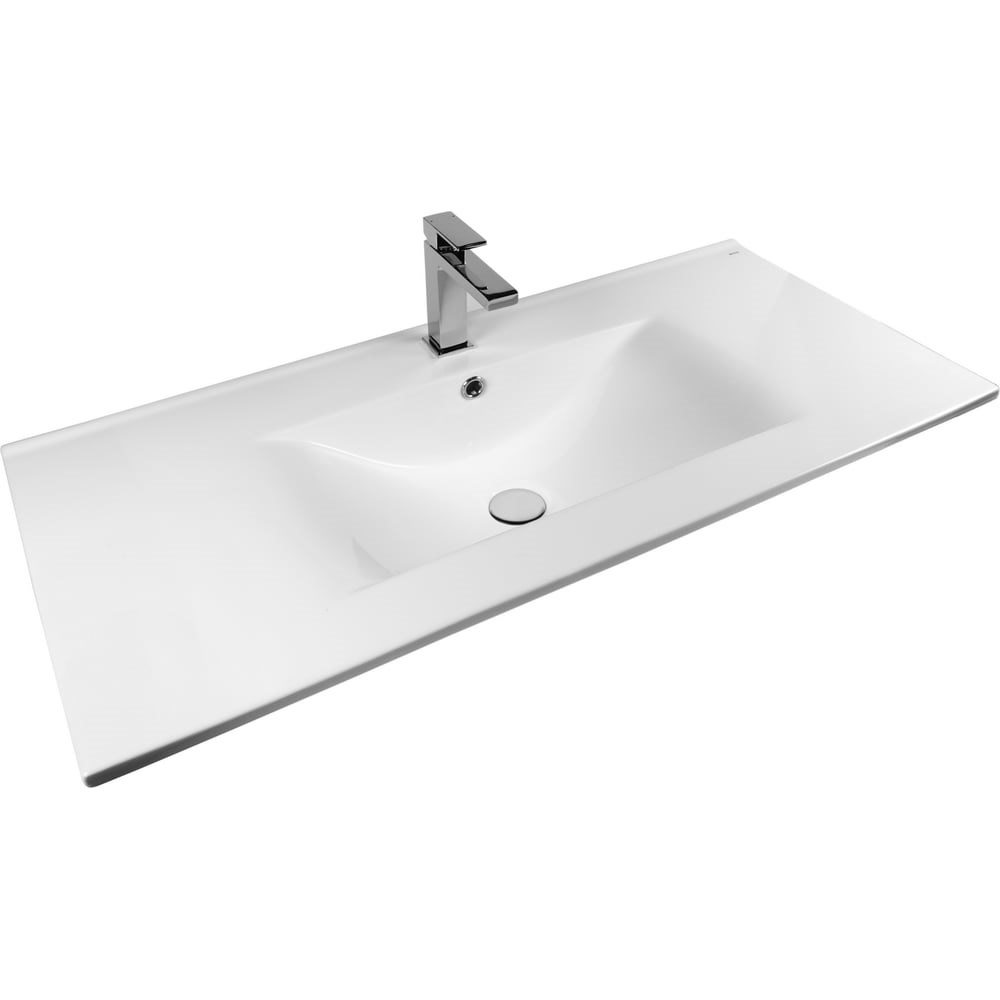 Раковина встраиваемая прямоугольная 1004617см белая BOND Cube S05-1000 с переливом и отверстием под смеситель имеет стильный дизайн и отлично смотрится в современном интерьере ванной комнаты. Она изготовлена из высококачественного сантехнического фарфора, покрытого утолщённым слоем стекловидной глазури, которая защищает поверхность от скапливания бактерий и выцветания, придаёт ей блеск и обеспечивает очень лёгкий уход за ней. Прямоугольная врезная раковина имеет бортик в тыльной части, предотвращающий попадание воды в область примыкания к стене, а её горизонтальная поверхность замечательно подходит для хранения туалетных принадлежностей. К данной раковине подходят донные клапаны с переливом BOND BV0200 или BV0205.