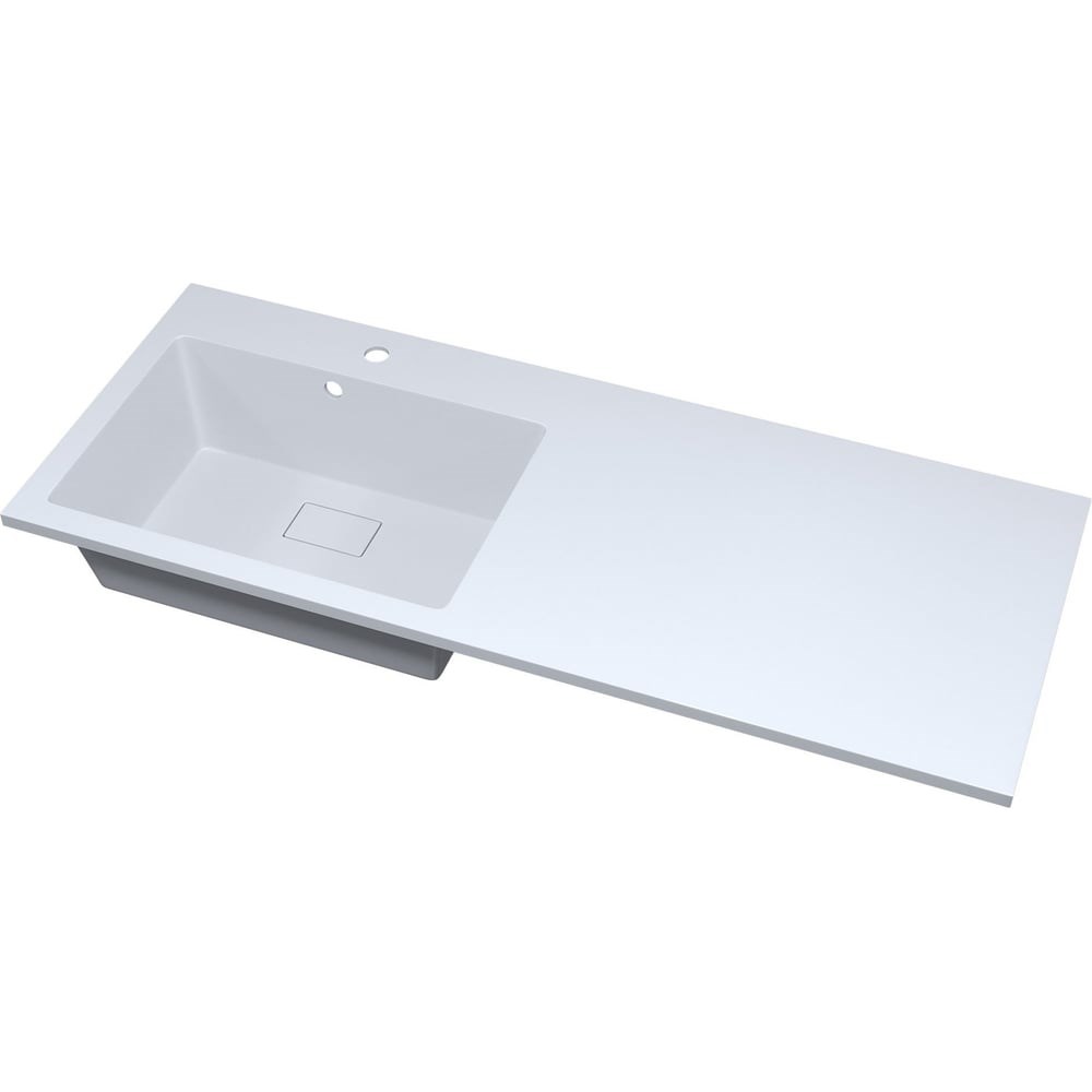 Раковина над стиральной машиной от бренда Uperwood из коллекции Cosmos шириной 120 см (120х48х17,2 см) с декоративной накладкой для слива изготовлена из литьевого мрамора. Литьевой мрамор гарантирует гигиеническую безопасность изделий и характеризуется высокими бактерицидными свойствами. Покрытие раковины - гелькоут, оно выполняет как декоративную, так и защитную функцию. Раковина-столешница представляет единую литую поверхность, которая состоит из чаши и широкой столешницы. Раковина оснащена переливом. Лаконичная форма раковины отлично впишется в любой современный интерьер ванной комнаты. Раковины из коллекции Uperwood Cosmos обладают уникальными характеристиками прочности, устойчивости к истиранию, а также выдающейся стойкостью и качеством цвета. Гарантия от производителя - 4 года. В комплект входит декоративная накладка для слива и слив с переливом. Кронштейны приобретаются отдельно (арт. KrCosmosL -левый; арт. KrCosmosR - правый). Стиральная машина устанавливается под "крыло" раковины. Коллекция раковин для ванной Cosmos представлена моделями из литьевого мрамора в белом глянцевом исполнении, а также раковинами из кварцевого композита с матовой поверхностью. Кварцевые раковины выполнены в цветах "жасмин" (белая матовая), "серый шелк" (серая матовая) и "уголь" (черная матовая). Чаша раковин может быть расположена как справа (столешница слева), так и слева (столешница справа). Со стороны чаши раковины находится отверстие под смеситель и перелив.