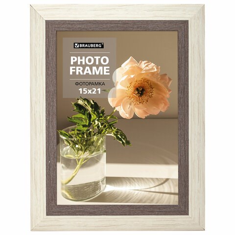 Рамка 15х21 см небьющаяся, багет 30 мм, пластик, BRAUBERG "Lambert", слоновая кость/капучино, 391250