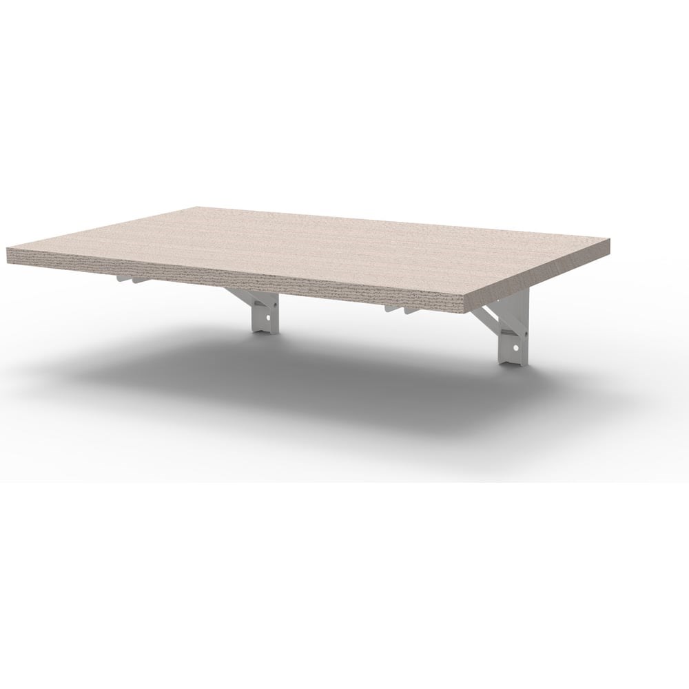 Стол журнальный раскладной. Крепится к стене. Кронштейны выполнены из стали, окрашены в белый цвет. Столешница ДЛСП 16мм, цвет ясень шимо светлый. Раскладной стол подойдет для небольшого помещения. Благодаря своей конструкции стол экономит место.Откидной стол подойдет в комнаты, которые хочется организовать под рабочее место, например, балкон. Раскладной столик можно использовать в качестве кухонного стола на небольшой кухне или журнального стола в небольшой гостиной. Максимально распределенная нагрузка до 30кг.