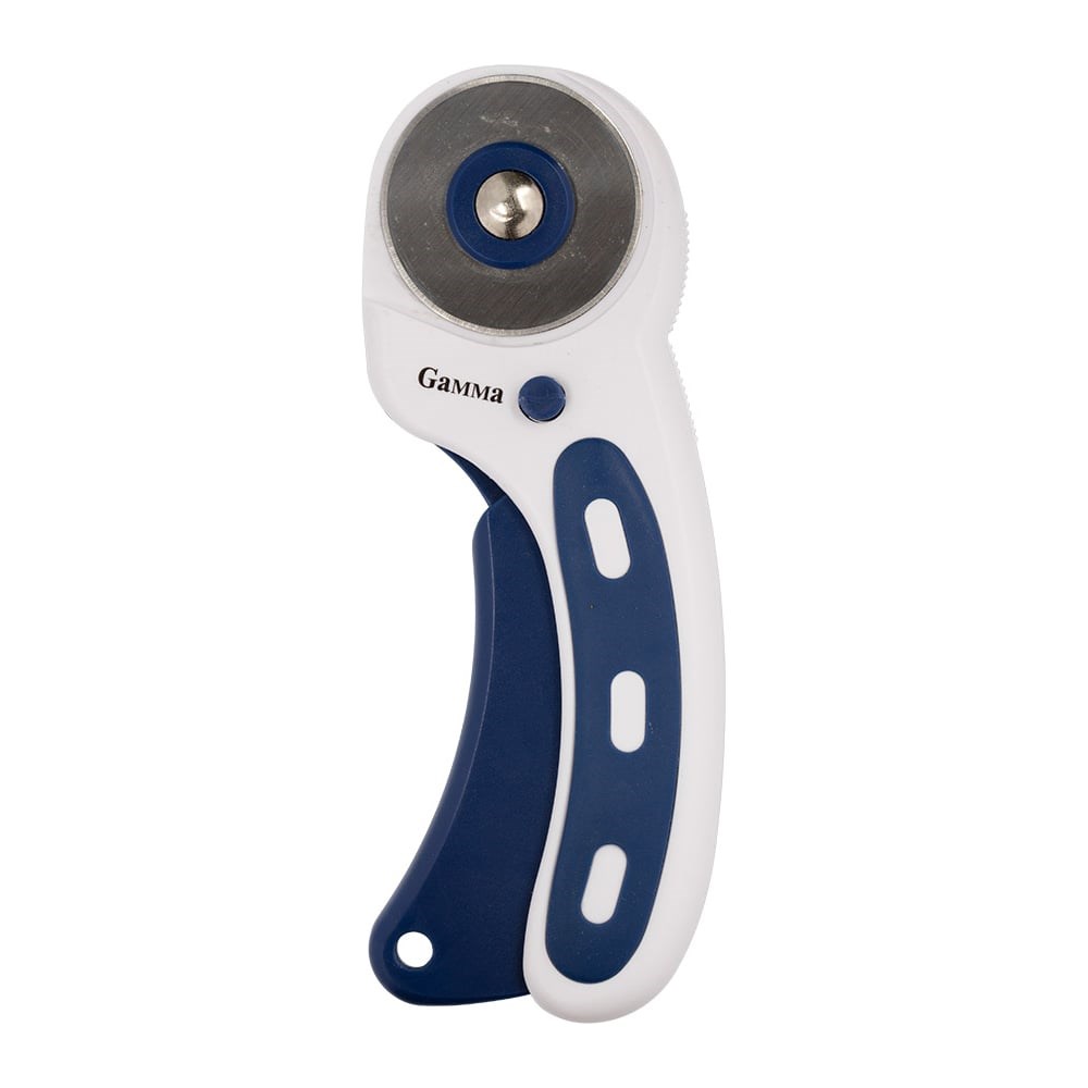 Нож раскройный DKS-045 (d=45 мм; пластик, металл) Gamma 546587 подходит для всех видов тканей, кожи, замши, бумаги и картона средней толщины. Инструмент имеет фиксатор лезвия, применяется для точного раскроя 4-8 слоев материала. Внимание, изображение товара может отличаться от реального!