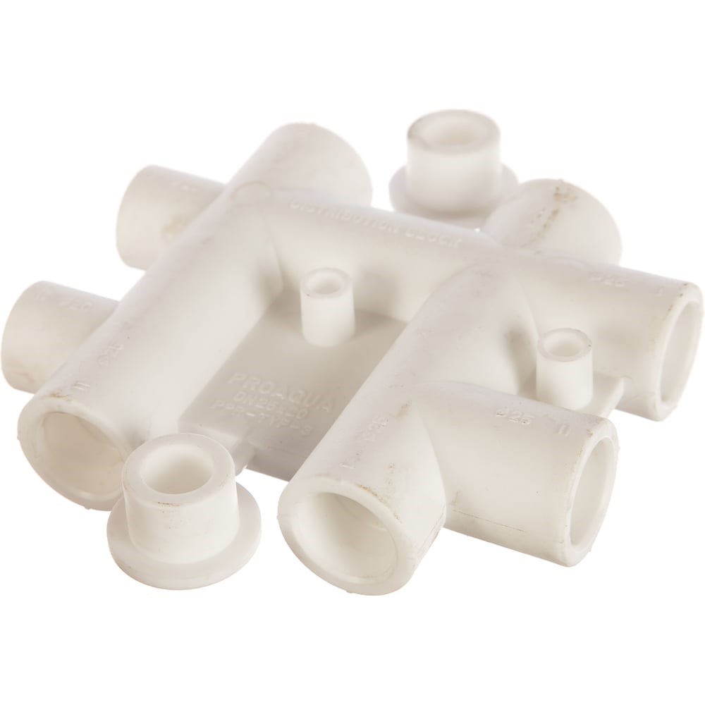 Распределительный блок для систем водоснабжения PRO AQUA PP-R белый 25-20 мм PA63012Pb - распределительный блок для систем водоснабжения PRO AQUA позволяет организовать компактное подключение трубопроводов холодной воды, питающей трубопровод горячей воды и рециркуляцию в одной плоскости с использованием минимального количества сварных соединений. Неиспользуемые выходы фитинга могут быть заварены с помощью поставляемых в комплекте заглушек. Изделие безопасно для питьевой воды, не подвержено коррозии, образованию отложений и зарастанию, обладает хорошими теплоизолирующими и шумоизолирующими свойствами. Срок службы не менее 50 лет при соблюдении условий эксплуатации.