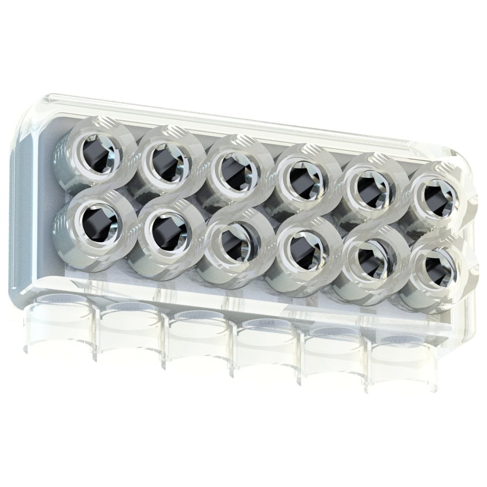 IPRO Коннектор распределительный К6 на 6 клемм 130А 85x30x45мм с усиленной фиксацией жил 12672. Предназначен для соединения кабелей в люке опоры наружного освещения. Имеет усиленный корпус толщиной 3мм для улучшенной механической защиты от ударов и защиты от пробития тока на корпус металлической опоры.Каждая жила фиксируется на 2 винта, что обеспечивает более надежный контакт. Можно подключать медные и алюминиевые провода сечением 1,5 - 35 кв.мм.Максимальное напряжение 1кВ. Винты под имбусовый ключ ("шестигранник") номер 5. Отдельно приобретается силиконовый колпак К6 для дополнительной защиты (показан на втором фото).