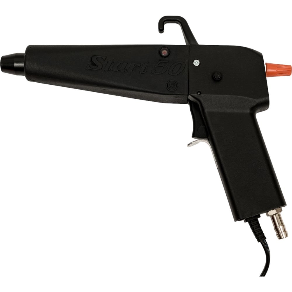 Электростатический распылитель с воронкой START 50 СТАРТ-50 4687202091355 предназначен для нанесения полимерных порошковых покрытий на изделия любой конфигурации из металла, стекла, керамики, и других термостойких материалов. Может использоваться на производствах с автоматическими линиями для подкрашивания изделий. Распылители марки «Старт» обладают эффектом «псевдотрибостатики», т.е. без проблем качественно прокрашивают любые острые углы, благодаря автоматическому изменению напряжения на коронирующем электроде в зависимости от расстояния до окрашиваемого изделия Для удобства хранения в подвешенном состоянии на корпусе предусмотрен специальный крючок.