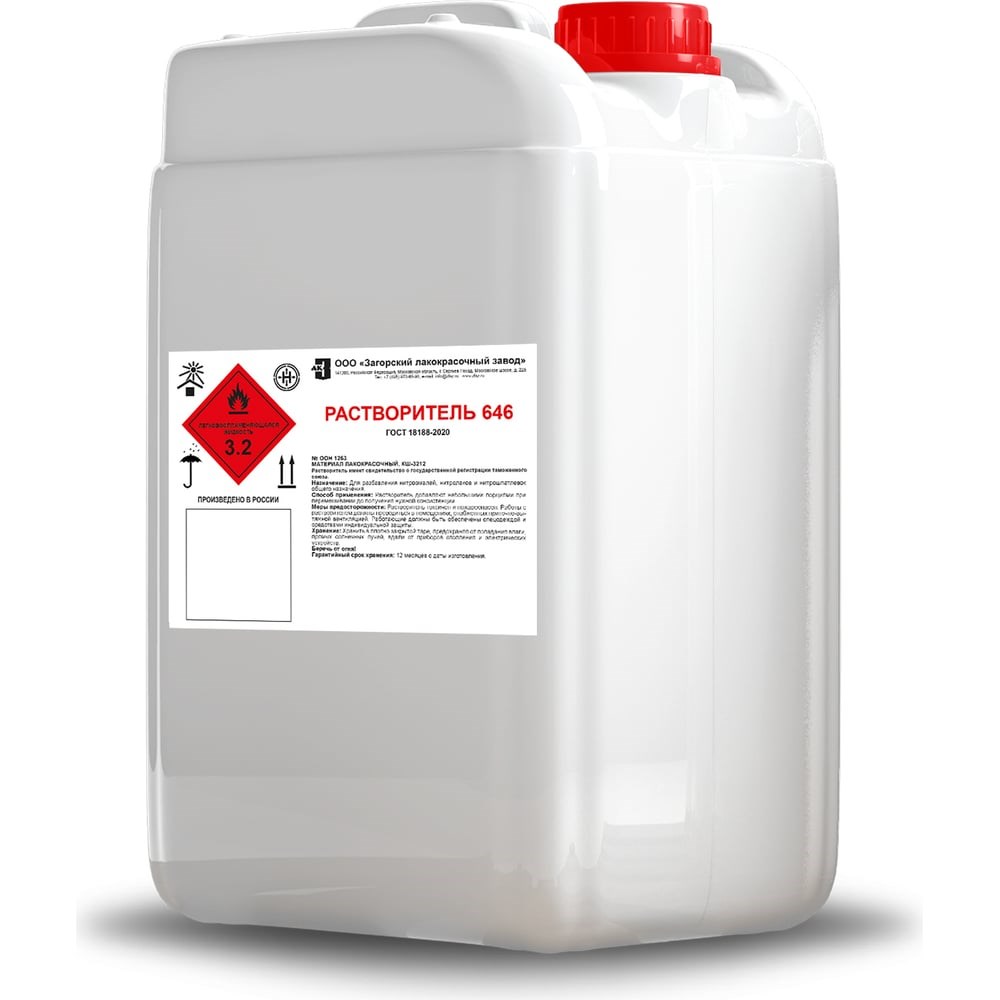 Растворитель ЗАГОРСКИЙ ЛАКОКРАСОЧНЫЙ ЗАВОД 646 10 л ZLK05837 используется для разбавления эмалей, красок, лаков и шпатлевок. Обеспечивает быстрое высыхание покрытий из нитроцеллюлозной эмали.