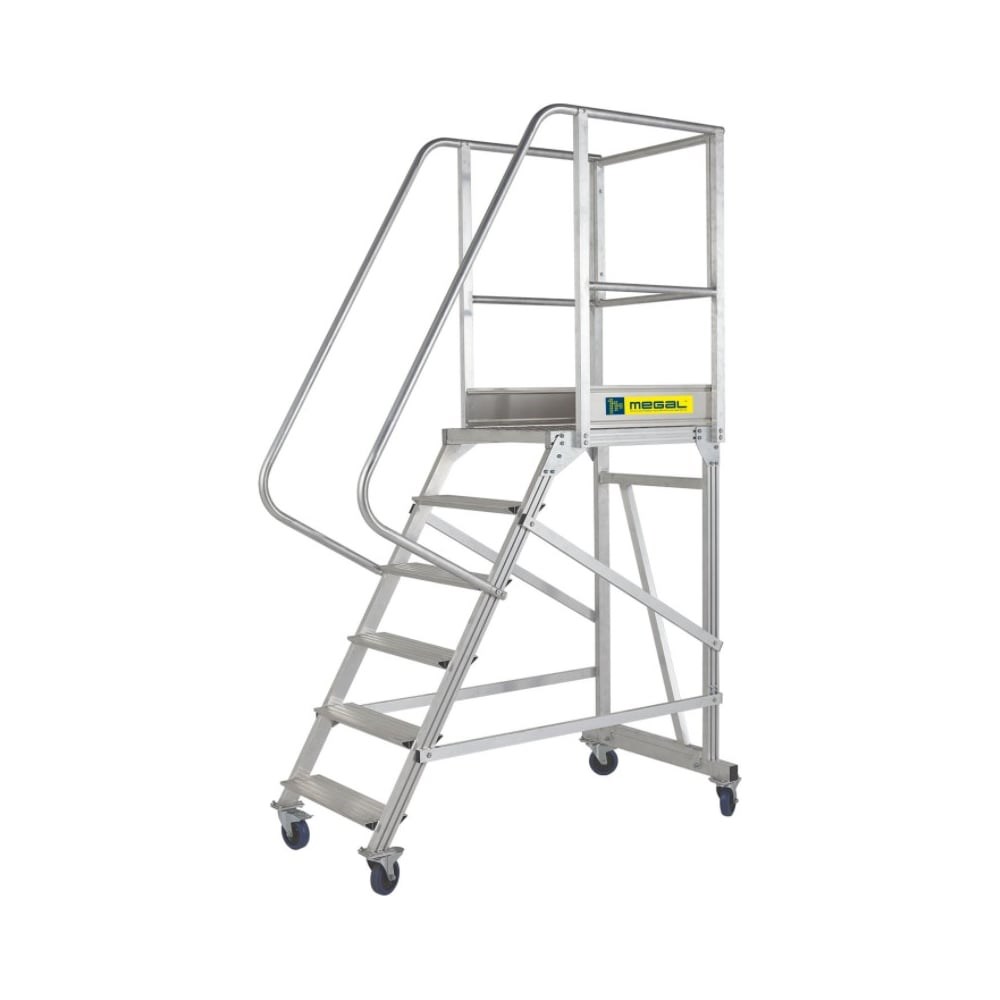 Разборная вышка-стремянка на колесах MEGAL ВС-1.0 150 кг 211510 предназначена для работ в торговых залах, на складах, вдоль стеллажей и других объектов, при проведении ремонтных, монтажных и иных работ. Противоскользящие ступени из специального эксклюзивного рифленого профиля обеспечивают безопасный подъем/спуск. Мягкие колеса (диам. 125 мм) с фиксатором позволяют без усилий перемещать вышку-стремянку в пределах рабочей зоны. Все соединительные узлы и элементы полностью безопасны, обработаны и одобрены службой контроля качества. Обратите внимание! Количество ступеней не соответствует представленному на фото.