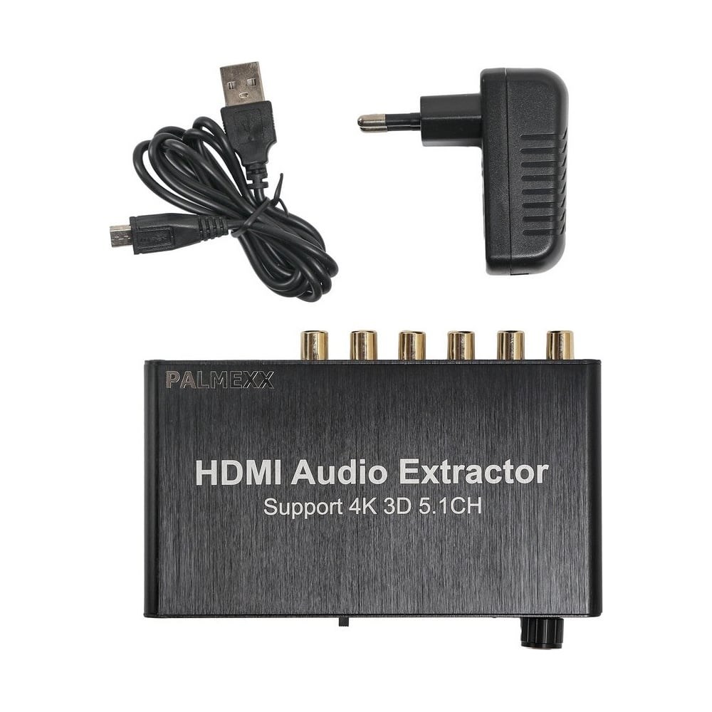 Конвертер PALMEXX HDMI Audio Extractor 5.1CH 4K 3D - это экстрактор, который может автоматически отделять от входного видеосигнала по HDMI аудиосигнал, преобразуя его в аналог, и поддерживает декодирование Dolby AC-3/DTS (включая потоковое цифровое аудио 5.1 RAW). Он широко используется в семьях, школах, площадях, концертных залах, кинотеатрах и других общественных местах, чтобы насладиться шоковым эффектом DTS или Dolby.Обратите внимание! HDMI ARC не поддерживается!Вход: HDMI.Выход: HDMI; SW, CEN, SR, SL, FR, FL; 3,5-мм порт для наушников.Версия HDCP: HDCP1.4.Версия HDMI: HDMI1.4b.Аналоговый аудиовыход: .2CH/5.1CH.Максимальная пропускная способность: 0,340 МГц.Максимальный битрейт: 10,2 Гбит/с.Длина входного кабеля: стандартный кабель HDMI ≤7м AWG26.Длина выходного кабеля: стандартный кабель HDMI: ≤8m AWG26.Отношение сигнал/шум: 120 дБ.Изоляция стереозвука: 80 дБ (1 кГц).Битрейт: 18-24 bit.