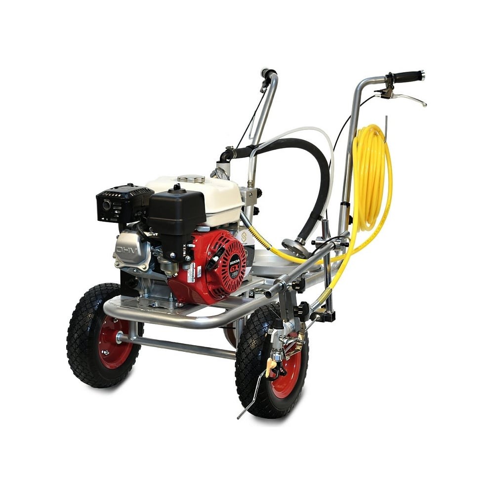 Разметочная машина с диафрагменным насосом SCHTAER Wega 1 предназначена для нанесения сплошных и прерывистых линий краской на дорогу, разметки пешеходных переходов, нанесения дорожных знаков и надписей на дорогу, разметки парковочных мест около магазинов и выставочных залов, разметки спортивных площадок и футбольных полей. Разметочную машину с одним пистолетом можно использовать только с краской, пригодной для безвоздушного распыления. Также машину можно использовать для разметки дорожных бордюров, мостовых конструкций, столбов фонарного освещения, можно также ее использовать как бензиновый окрасочный агрегат и красить фасады зданий и бетонные заборы.