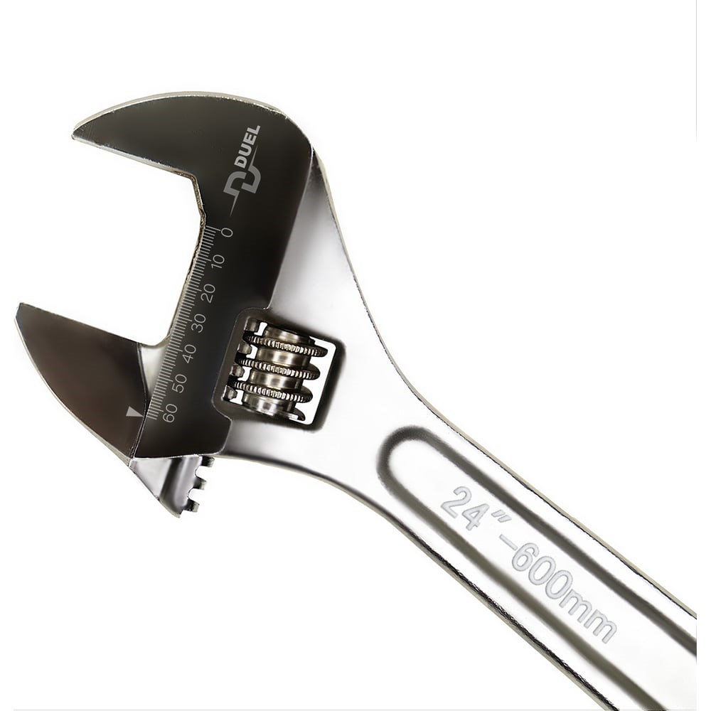 Разводной ключ используется для вращения гаек, болтов и других деталей. Модель является разновидностью рожкового ключа с регулируемыми губками. Инструмент выполнен из высокопрочной хромованадиевой стали с антикоррозийным покрытием, что делает его надежным и долговечным. Отверстие в рукоятке позволяет подвесить инструмент в мастерской для удобного хранения.