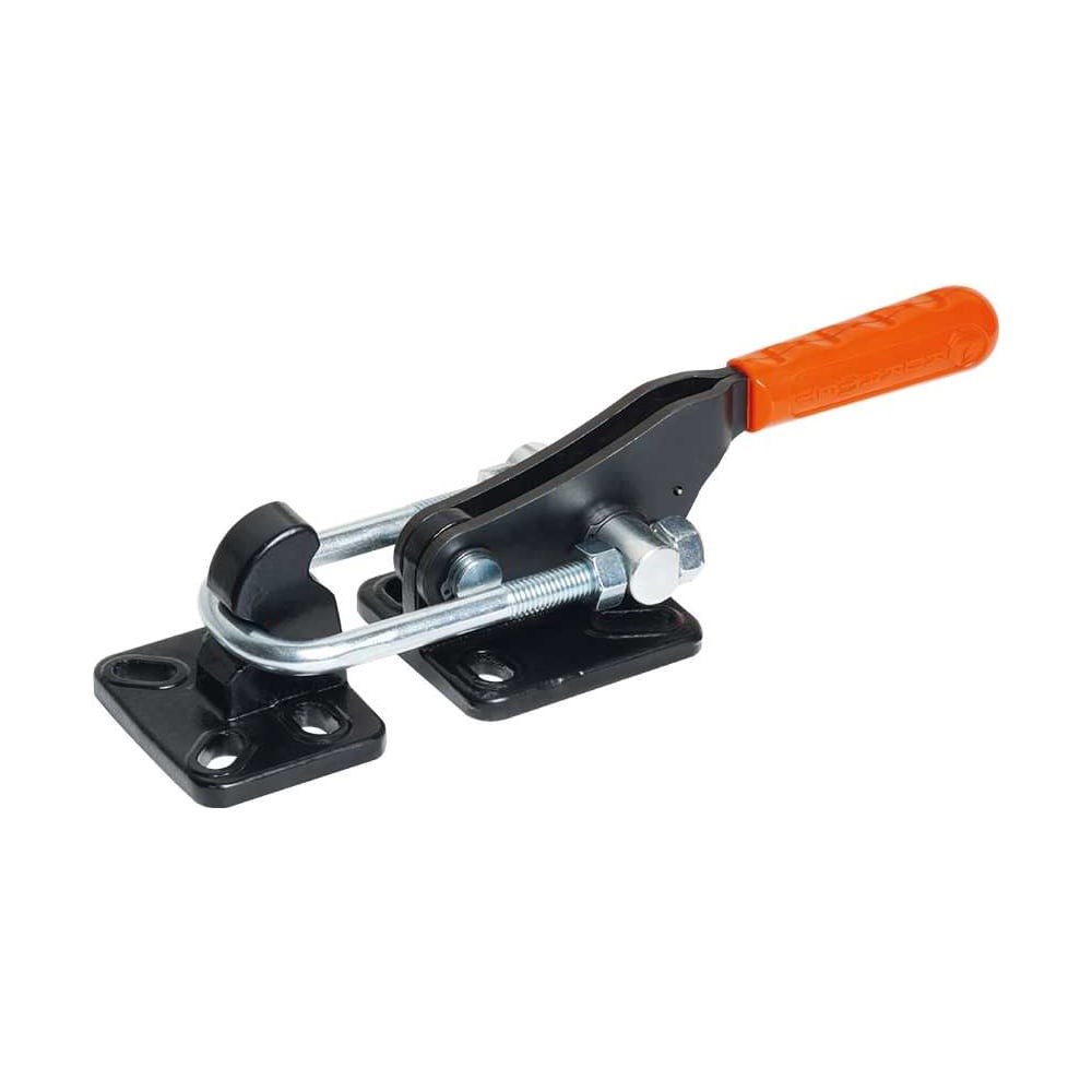 Материалы: Основание и крюк литые из прочного чугуна GGG-60, покрытого электростатической порошковой краской черного цвета. Рукоятка из вороненой листовой стали ST52. Насадка на рукоятку из полиуретана. Скоба и штифты из оцинкованной стали. Исполнение: Длина резьбы: 130 мм. F1 зажимное усилие: 15000 Н. F3 крепежная сила: 17000 Н. С min.: 50 мм. С max.: 135 мм. L min.: 290 мм. L max.: 375 мм.