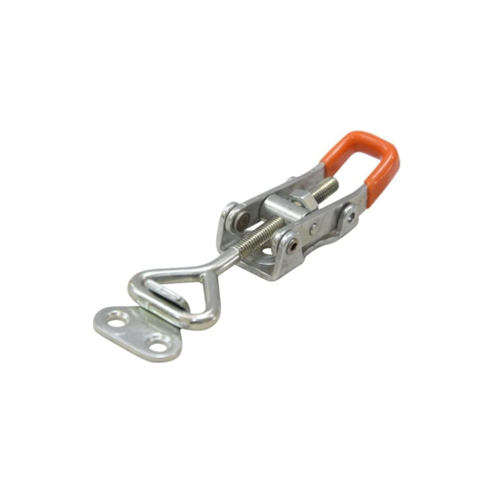 Регулируемая защелка со скобой, рукояткой и крюком KUKAMET S361-2-KМатериалы и исполнение:Основа из нержавеющей стали;Заклепки из нержавеющей стали 304;Втулки закаленные;Длина резьбы: 50 мм;F1 зажимное усилие: 1500 Н;F3 крепежная сила: 1725 Н;С min.: 25 мм;С max.: 60 мм;L min.: 110 мм;L max.: 145 мм