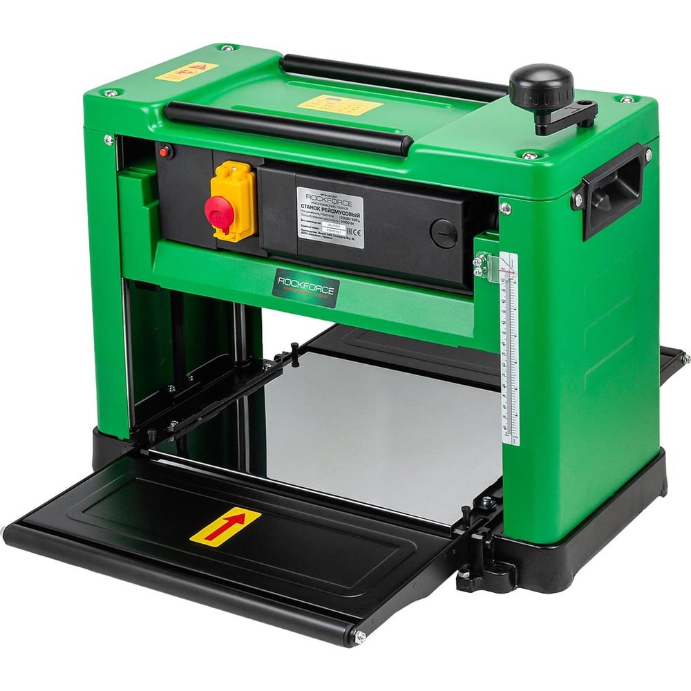 Станок рейсмусовый от бренда Rockforce. Данный станок это специально разработанное устройство для обработки различных пород древесины. Он оптимально подойдет для использования в различных мастерских по деревообработке, производствах, столярных кружках и т.д. Качество изготовления. Станок изготовлен из высококачественных материалов, что обеспечивает ему надежность и долговечность эксплуатации. Рейсмус имеет небольшие размеры, но благодаря прочному корпусу и качественной сборке, его можно при необходимости легко транспортировать на необходимое место. Продуманность конструкции. Установка необходимой высоты для обработки заготовок производится с помощью удобной шкалы, расположенной на корпусе станка. Данный рейсмус с двигателем в 2000 Вт и скоростью вращения 8000 об/мин предлагает высокое качество обработки и отличную производительность. Литая станина обеспечивает надежную установку на стол и высокую точность выполнения операции. Благодаря ременной передаче, станок способен обрабатывать заготовки из дерева толщиной от 6 до 160 мм. и шириной до 330мм. Универсальность. Использование рейсмусового станка позволит вам избавиться от кривизны, неровностей и дефектов распила, а также получить ровные детали заданного размера. Вы можете использовать станок как в столярной мастерской, в строительстве (например, для создания щитов оградительных), мебельных цехах, любительских кружках, домашних мастерских.