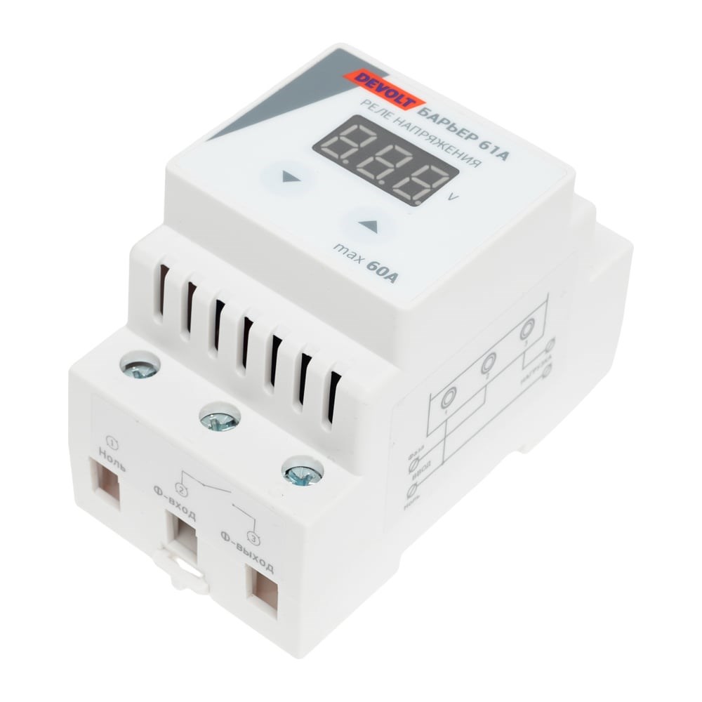 Дополнительные характеристики: Надежная мощная клеммная колодка. Двойная защита от перегрева клемм. Коммутируемый ток 60А. Максимальная коммутируемая нагрузка 13,5 кВт. Диапазон настройки верхнего предела отключения 210В - 270В (заводские настройки 250В). Диапазон настройки нижнего предела отключения 120В - 190В (заводские настройки 175В). Диапазон настройки времени подачи напряжения 10 сек - 600 сек (заводские настройки 60 сек). Время срабатывания по верхнему пределу 0,2 сек. Время срабатывания по нижнему пределу 1 сек. Погрешность измерения "+/- 1%".