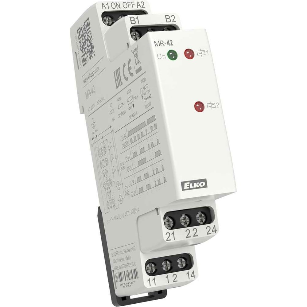 Дополнительные технические характеристики реле памяти ELKO EP MR-42/UNI AC/DC 12-240V 00000000175: Запоминающие (импульсные) переключатели с управляющими кнопками для регулирования освещения с нескольких позиций - практичная замена переменных (№6) и крестообразных (№7) переключателей. Благодаря управлению кнопками (неограниченное количество, параллельно подключение по 2 провода), монтаж устройства абсолютно прост и удобен. Реле сохраняет в памяти свое состояние после выпадения питания. При выпадении питания реле всегда выключено, но при обновлении питания автоматически вернется в исходное состояние. Возможность выбора: - 2x параллельный контакт или втрое шаговое реле; - выбор функции реализуется cпойкой (cпойка B1 - B2); - выходной контакт: 2x переключающий 16 A. Защита IP40 со стороны лицевой панели/IP20 клеммы.
