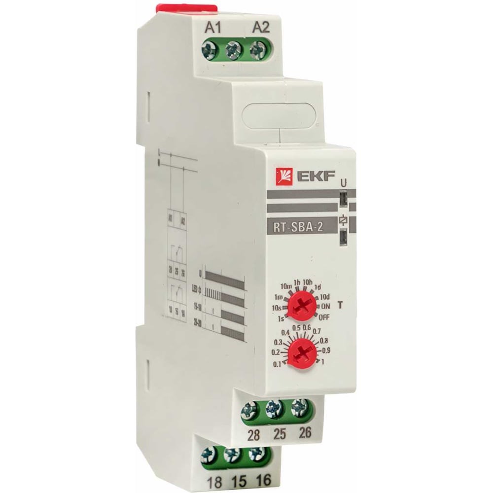 Реле времени EKF RT-SBA-2 (задержка времени включ.) PROxima rt-sba-2 является электронным коммутационным аппаратом с регулируемой установкой времени. Реле предназначено для включения нагрузки с задержкой времени. Переключение диапазона времени производится с помощью поворотного регулятора расположенного на лицевой поверхности реле. Реле применяется в системах промышленной и бытовой автоматики: в вентиляционных, отопительных, осветительных системах. Дополнительные характеристики: Точность установки - ≤5% Точность повторения - ≤0,2% Прерывание подачи питания - не менее 200 мс Коммутационная износостойкость - 100000 Механическая износостойкость - 1000000 Степень загрязнения - 3 Рабочая температура - от -5 до +40°С Температура хранения - от -25 до +75°С Подключение - Винтовые клеммы, макс. сечение провода 2,5 мм2 Момент затяжки - 0,5 Н*м