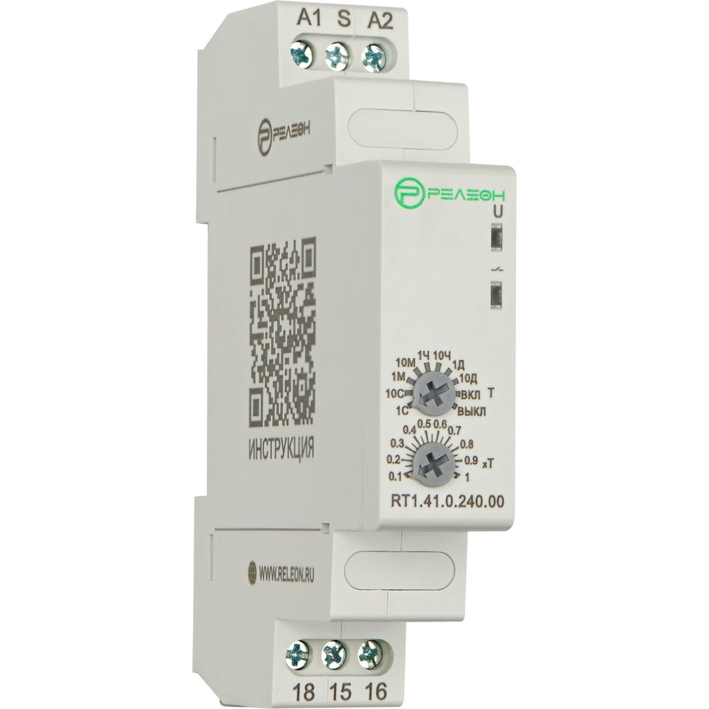 Реле времени РЕЛЕОН задержка выключения по сигналу 1 CO контакт 8А; 24-240 AC/DC; RT141024000 предназначено для управления нагрузкой с заданной пользователем задержкой выключения, после снятия сигнала. Функция задержка отключения по сигналу. Электропитание постоянно подается на таймер. Замыкание контактов управляющего сигнала (S) инициирует замыкание выходных контактов. Размыкание управляющих контактов (S) инициирует размыкание выходных контактов с задержкой по времени. Повторное замыкание управляющего сигнала (S) сбрасывает отсчет времени. Положение регулятора времени: 1сек., 10сек., 1мин., 10мин., 1час, 10час., 1день, 10дней, Вкл., Выкл.
