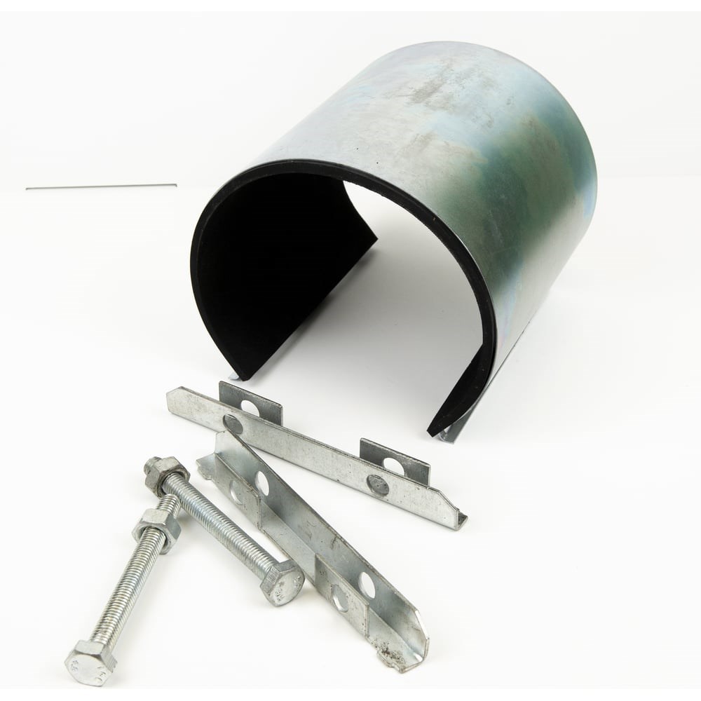 Ремонтный хомут ДТРД оцинк. краб 3-1/2" Дн 101-110, шир. 150 17009 используется для устранения протечек в системах водоснабжения и отопления. Устраняют разгерметизацию трубопроводов в случае трещин, течей или свищей при условии, если размер повреждения не превышает длины хомута по 20 мм с каждого края и ⅔ по диаметру трубы. Ремонтные хомуты изготовлены из оцинкованной стали. Толщина корпуса составляет 1 мм, крепежного моста - 2 мм. Крепежные элементы оцинкованы. Уплотнение изготовлено из NBR (бутадиен-нитрильный каучук) с рабочим диапазоном температур от -50°С до +110°С, время отвердения при +140°С - 42 мин. Уплотнение приклеено к корпусу. Рельеф поверхности уплотнения типа «вафля».