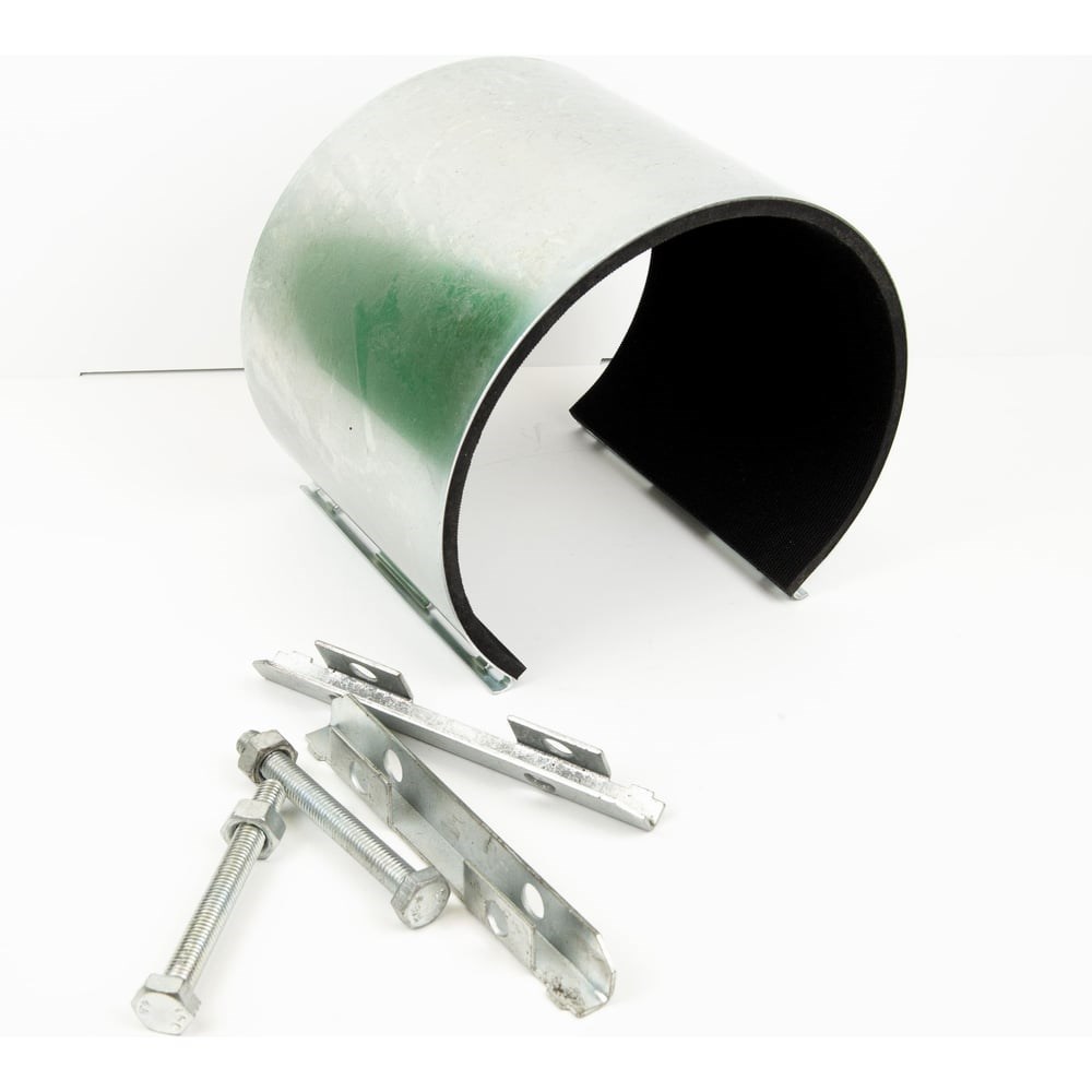 Ремонтный хомут ДТРД оцинк. краб 6" Дн 159-172, шир. 150 17012 используется для устранения протечек в системах водоснабжения и отопления. Устраняют разгерметизацию трубопроводов в случае трещин, течей или свищей при условии, если размер повреждения не превышает длины хомута по 20 мм с каждого края и ⅔ по диаметру трубы. Ремонтные хомуты изготовлены из оцинкованной стали. Толщина корпуса составляет 1 мм, крепежного моста - 2 мм. Крепежные элементы оцинкованы. Уплотнение изготовлено из NBR (бутадиен-нитрильный каучук) с рабочим диапазоном температур от -50°С до +110°С, время отвердения при +140°С - 42 мин. Уплотнение приклеено к корпусу. Рельеф поверхности уплотнения типа «вафля».